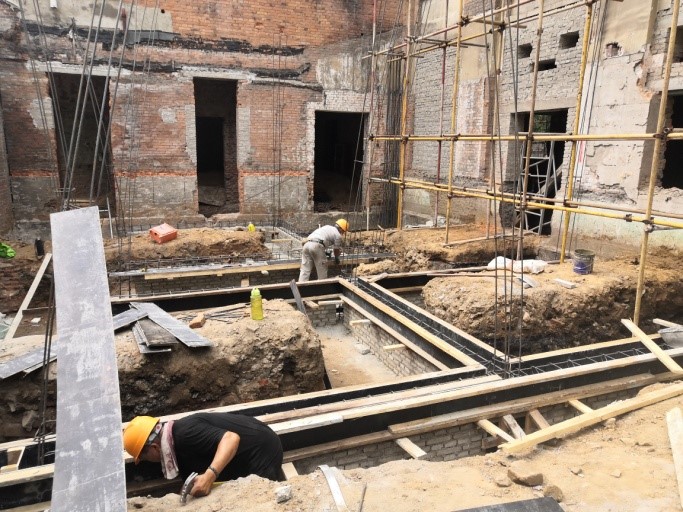 工程施工,把控安全质量,保证施工进度。园区内食堂改造项目、物业工程维修、老旧小区改造等工作如火如荼,施工人员顶烈日、战高温,按规定做好“全副武装”,完成钢架焊接、墙体砌筑、模具安装、防水修补等工作。虽然温度持续走高,但施工人员尽责坚守岗位,在保障人员防暑降温和施工安全的前提下全面加快各项工程进度。