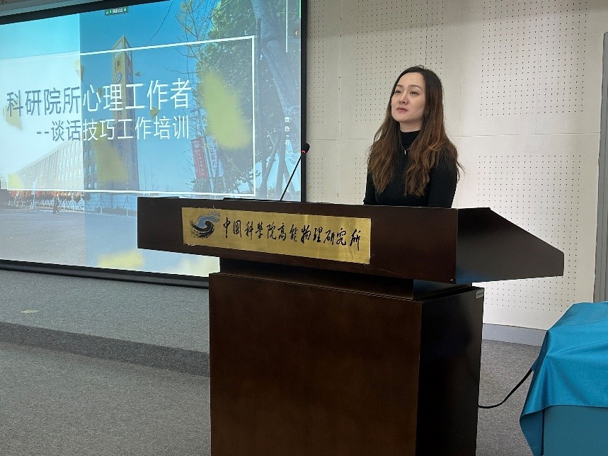 中国科学院大学心理咨询中心秦蕾为大家开展了《科研院所心理工作者—谈话技巧工作》的培训,她介绍了科研院所心理工作者的工作定位、常见心理疾病的识别、自我关怀、谈话技术等方面,并通过个案重现进行了现场演练。