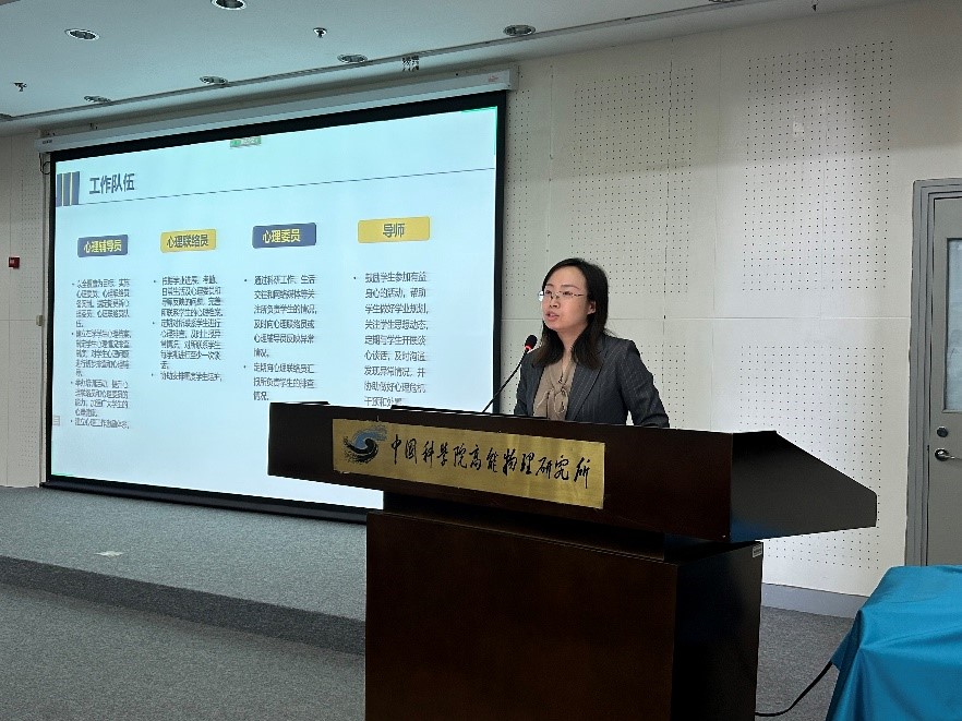 教育处处长保增宽为全所25名心理联络员和45名心理委员发放了聘书。副处长杨云霞为大家介绍了高能所心理健康工作的情况,包括心理工作者的工作定位、队伍情况、工作的方式方法、注意事项等。