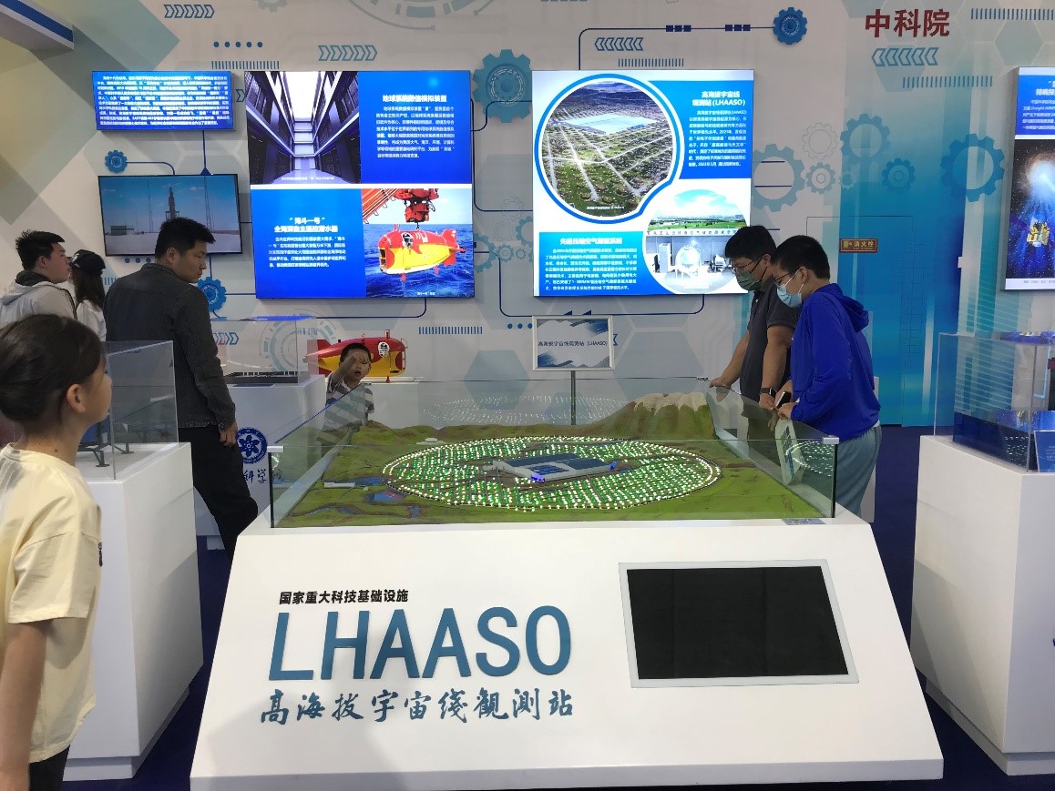 2023年全国科技活动周暨北京科技周于5月20日在北京市通州区绿心公园城市绿心活力汇正式开幕。代表高能所研究成果的高海拔宇宙线观测站沙盘、“怀柔一号”卫星模型、“慧眼”卫星模型参加了本次展览。