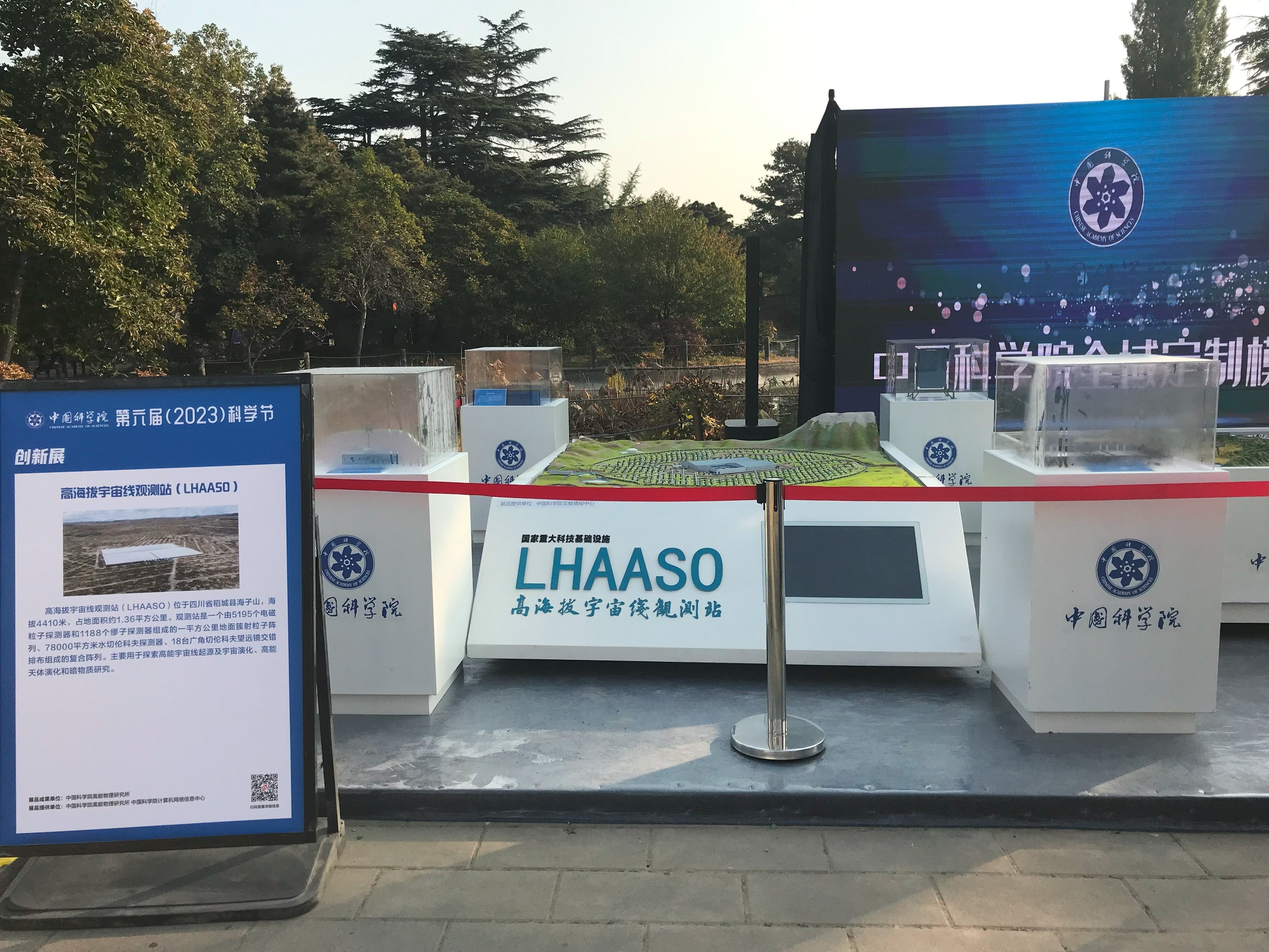 中国科学院第六届科学节(2023)北京主场活动于10月28日至29日在中国科学院植物研究所(国家植物园南园)举行。江门中微子团队在活动现场演唱歌曲《地下700米的星空与浪漫》;代表高能所研究成果的高海拔宇宙线观测站沙盘、高能同步辐射光源沙盘、硬X射线调制望远镜模型参加了本次展览;高能同步辐射光源图片、高海拔宇宙线观测站图片、中国散裂中子源纪念邮票等在“科学之美”展板进行了展示。
