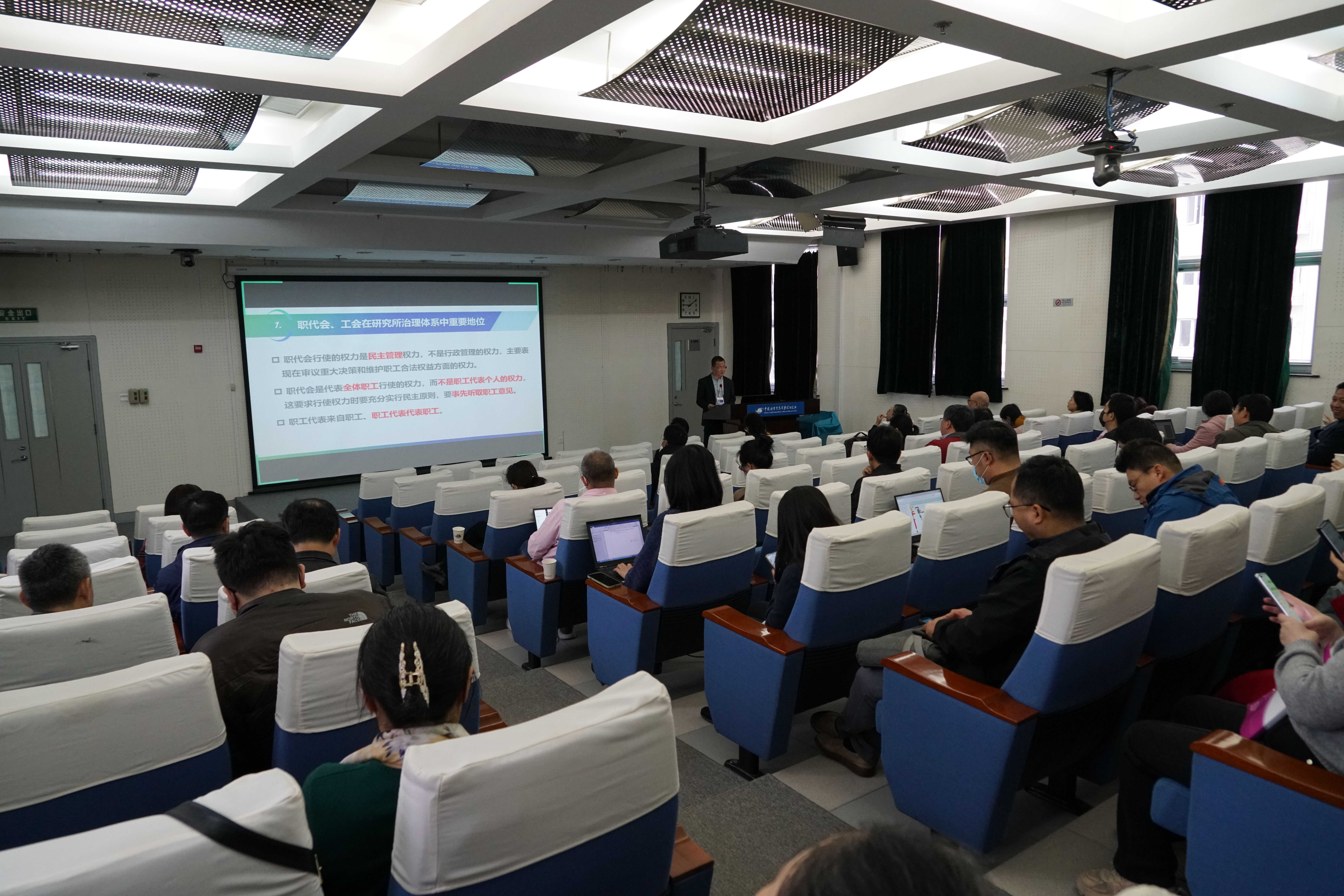 3月27日,高能所2024年度职工代表和工会干部培训班在主楼C305会议室举行。来自全所的103名职工代表和工会干部参加了会议。东莞研究部分工会在研究部A1阶梯教室设立视频分会场。所纪委书记李伟应邀出席会议。培训班分为报告会、实务培训和分工会总结三项内容。