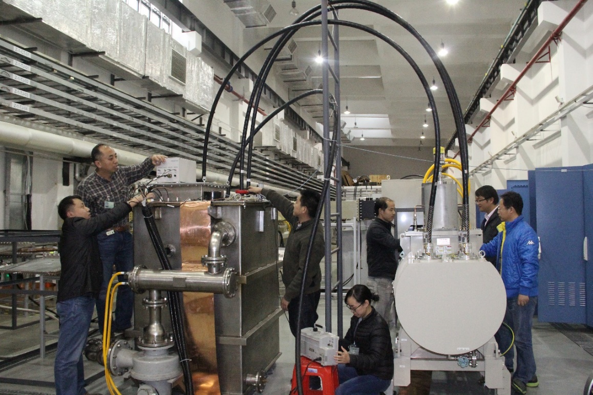 2018年春节前夕,因为美国进口速调管的故障和延期,高频功率源成为工程瓶颈。直线加速器射频功率源组全体人员,每天连续工作14-16小时,不少年轻职工的孩子都尚年幼,却因经常需要加班无法照看,甚至孩子生病了也只能托付家人送医。两位单身青年也因为追赶工作进度,将各自安排好的婚期一再推迟。当时的系统负责人李健已经有三个春节留守东莞,在万家团圆的时刻依然坚守岗位,他带领团队克服重重困难,解决了诸多技术难题,终于赶在春节前圆满完成任务,为加速器速调管功率源的稳定运行提供了强有力的保障,确保了整个工程的进度。