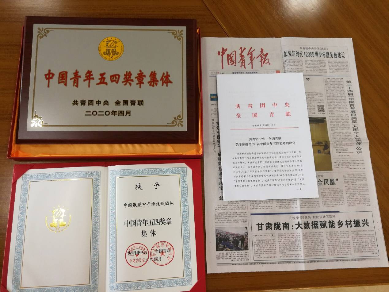 2013年-2014年度,中国散裂中子源加速器技术部荣获“青年文明号”荣誉称号;2019年,中国散裂中子源团队荣获“广东青年五四奖章集体” 荣誉称号;2020年,中国散裂中子源团队荣获“中国青年五四奖章”荣誉称号;2021年,东莞研究部团总支荣获“中国科学院五四红旗团支部”称号。