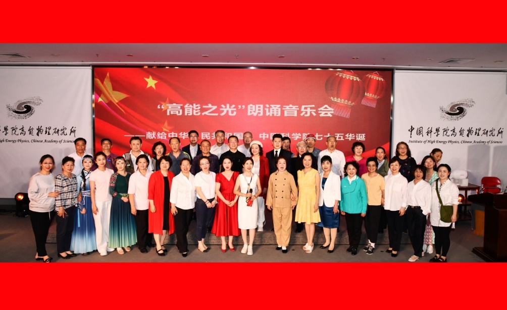 为庆祝中华人民共和国成立75周年、中国科学院建院75周年,进一步传承和弘扬科学家精神,5月22日,由高能物理所党委、工会、团委联合中国科学院文联朗诵艺术团、科苑艺术团在高能物理所共同举办了“高能之光”朗诵音乐会——献给中华人民共和国、中国科学院七十五华诞文艺演出。高能物理所纪委书记李伟、院文联朗诵艺术团团长岳爱国、国家一级演员姚美含等出席活动,朗诵音乐会演职人员和高能物理所部分科研人员、研究生、退休职工以及职工家属共100余人共同观看了演出。
