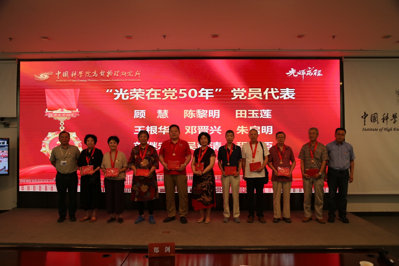 在“光荣在党五十年”纪念章颁发环节,李伟介绍了14位获本年度 “光荣在党五十年”纪念章的老党员,魏龙为9位到场的老党员颁发纪念章,副所长董宇辉向他们赠送了政治生日纪念卡,本年度新入党的党员同志为老党员们献上鲜花与祝福。会上,16名新党员进行了入党宣誓,“光荣在党五十年”老党员代表陈黎明领誓,在场全体党员一起重温了入党誓词,再次坚定“为共产主义奋斗终身”的理想与信念。