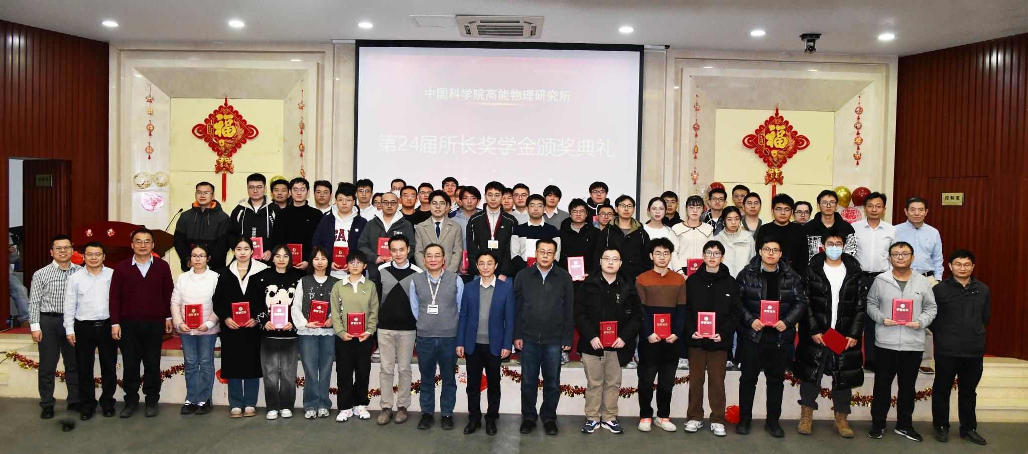 会上,曹俊分享了他十五年前,在大亚湾实验室跨年时遇到了电力供应不稳等问题并解决的难忘经历,随后回顾了2024年研究所取得的多项重大科研成果,充分展示了高能所各研究团队的努力与成就。他对获所长奖学生的努力与收获表示祝贺,指出正是他们的拼搏与合作,促成了研究所的持续发展与突破。最后,他向所有人送上了新年的祝福。魏龙介绍了所长奖学金评选流程并宣读获奖名单,所领导为获奖学生颁发证书并合影留念。