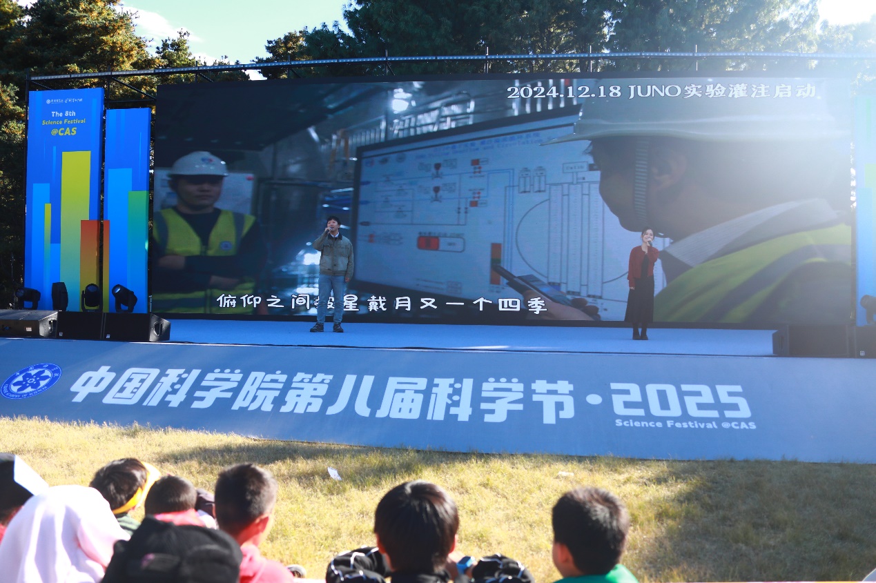 中国科学院第八届科学节(2025)北京主场活动于11月1日至2日在中国科学院植物研究所(国家植物园南园)举行。江门中微子团队在活动现场演唱歌曲《别叫我幽灵》,代表高能所研究成果的江门中微子实验模型、高海拔宇宙线观测站沙盘、爱因斯坦探针卫星模型参加了本次展览;高能同步辐射光源图片、高海拔宇宙线观测站图片、江门中微子实验图片在“科学之美”展板进行了展示。