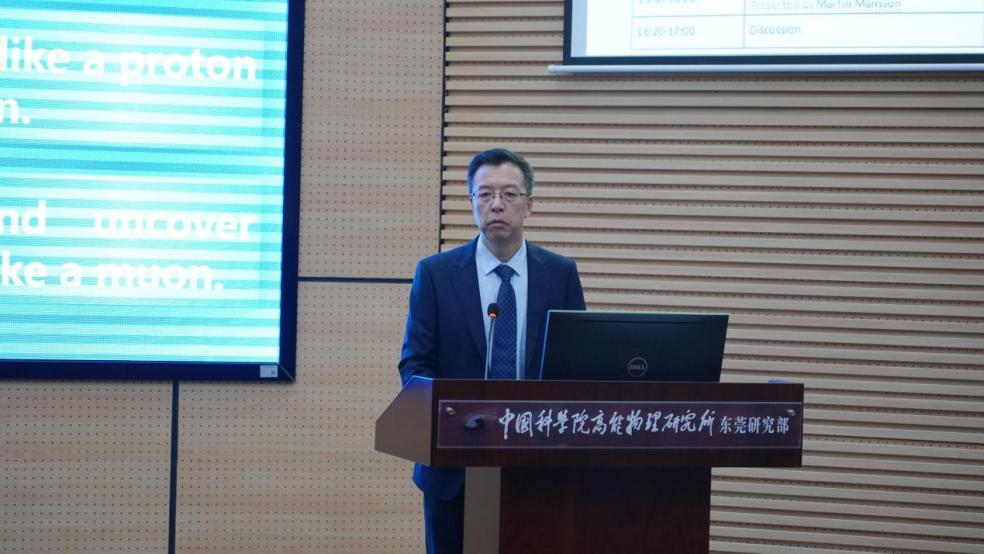 高能所党委书记王生致欢迎辞,他对远道而来的欧洲代表团表示热烈欢迎,并详细介绍了CSNS运行情况以及CSNS二期工程进展,展现了我国在尖端科研设施研究上的水平和能力。