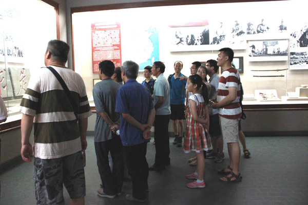 1937年7月7日在卢沟桥发生中日军事冲突,日本就此全面进攻中国。“七七事变”是日本帝国主义为实现鲸吞中国的野心而蓄意制造出来的,是其全面侵华的开始。纪念馆里的墙壁上和展柜里陈列着当年战争的照片和实物,记录着日本帝国主义侵华的罪行,这些血淋淋的罪证让在场的每一位同志都沉重而激动。通过观看幻影成像形式表现的地道战和运用激光手段制作的平型关大捷等史料,我们充分感受到中国共产党和中国人民英勇抗战的革命精神和智慧力量。