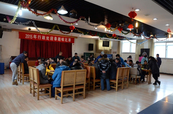 为丰富行政处职工的业余文化生活,提升团队凝聚力,2015年1月5日中午行政处利用休息时间在高能所工会俱乐部举行了迎春趣味比赛。比赛项目包括跳棋、飞镖和敲三家等三项大家参与度高的娱乐项目。