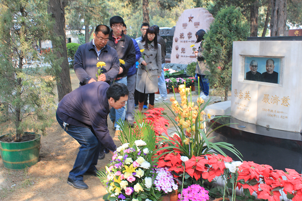 上午9时,全体活动人员在天体楼集合步行到八宝山革命公墓,前往严济慈先生墓地,向科研前辈致敬;然后来到任弼时墓以及一号墓区,缅怀革命先驱。本次活动介绍和朗诵先烈的生平事迹,并集体向烈士敬献鲜花、默哀。