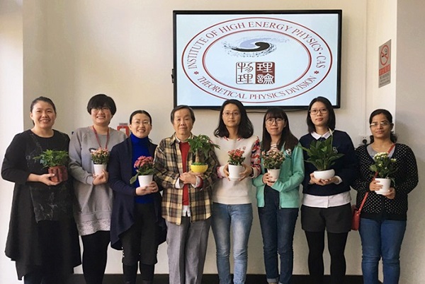 当下,女性科学家比例小、从事理论物理的女性科学家更少的现象已经引起了国际国内社会的高度重视,中国科协数据显示,国内也存在着女性科研工作者“高位缺席”现象,两院院士中只有5%是女性;长江学者中,女性的比例是3.9%;中国青年科技奖获奖者中,女性占8.4%。理论物理研究室目前共有9名女性:包括两名在职女性科研工作者、两名行政和学术秘书、一名来自印度的女博士后和4名女研究生。3.8国际妇女节是全世界妇女的节日,理论室老中青、海内外的女同胞在这一天庆祝属于自己的节日,并感谢历史上那些为争取与男性平等所付出艰辛努力的妇女。希望未来,女性科研工作者能在科研道路上获得更多成就。