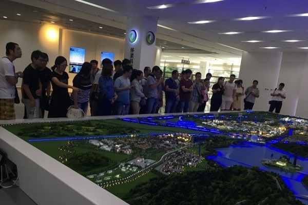 同志们参观中心管委会内园区沙盘模型