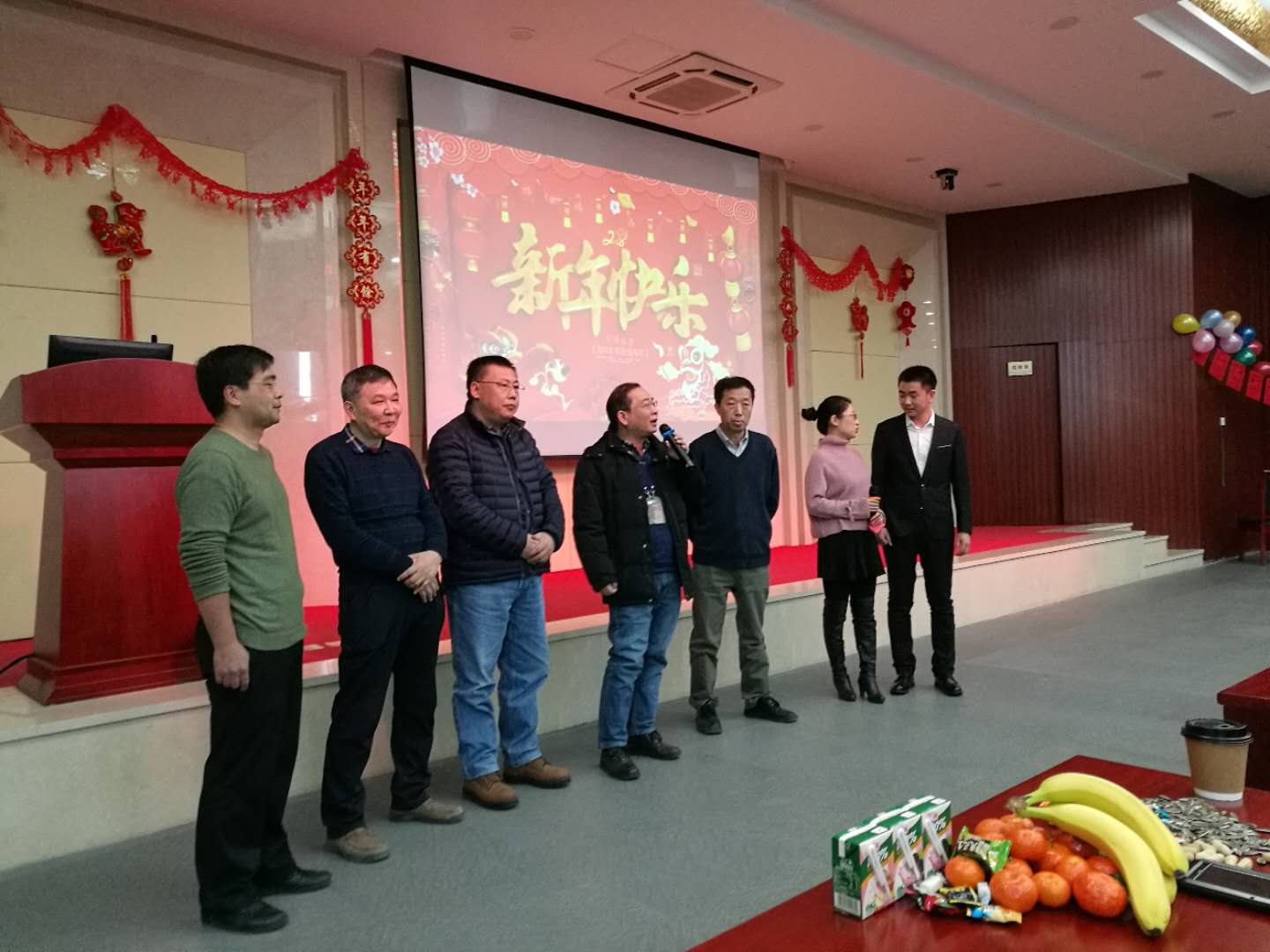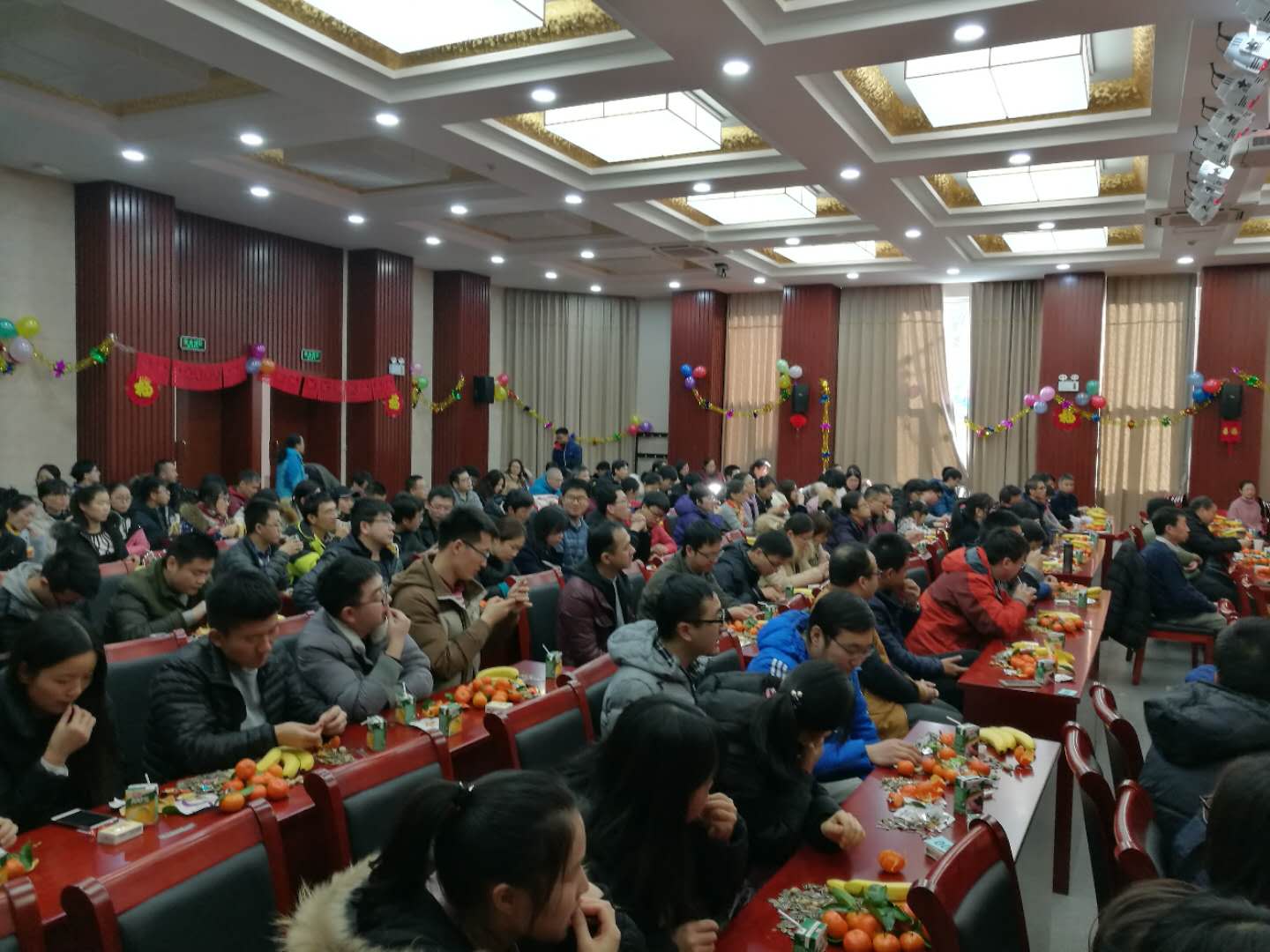 告别难忘的2017,迎来崭新的2018;2月2日下午,报告厅一楼会议室内张灯结彩,座无虚席,多学科中心2018年迎新春团拜会正在此隆重举行。中心全体职工、学生,共约180人欢聚在此,共叙友情,共话未来。
