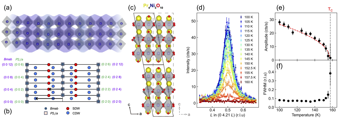 图1:三层镍基超导体RE4Ni3O10中交织的电荷/自旋密度波序示意及相变温度的确定