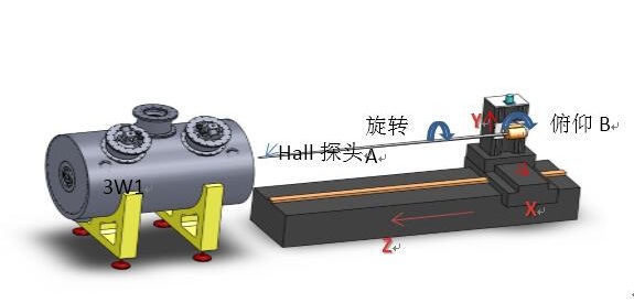 3W1霍尔测量系统运动平台是3W1磁场测量系统的运动执行部分。高精度霍尔磁场测量系统是为获得3W1水平工作状态下磁场特性参数而特别设计的专用测量装置。测量结果是3W1磁场性能优化的依据。测量系统的测量精度直接影响3W1性能评价的准确性。 3W1霍尔测量系统运动平台是磁场测量系统关键部件之一,运动精度直接影响测量系统的性能。