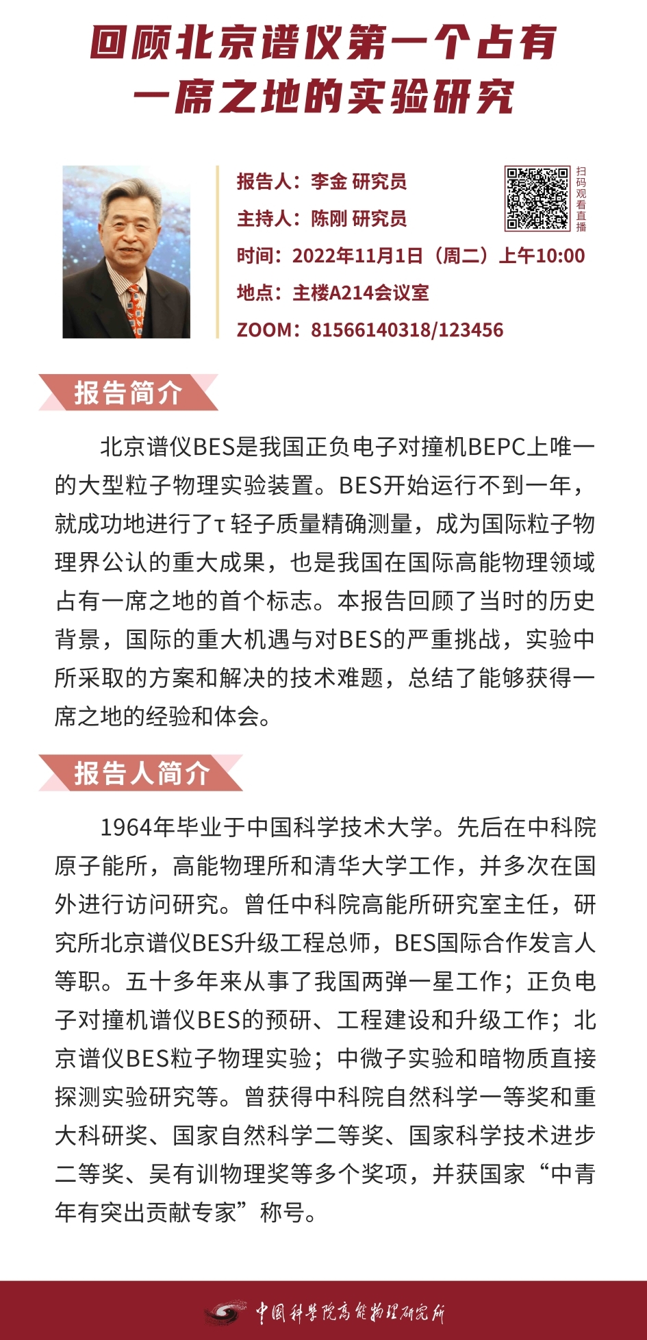 【11.01】建所50周年系列活动之高能所科技创新论坛(359)回顾北京谱仪第一个占有一席之地的实验研究