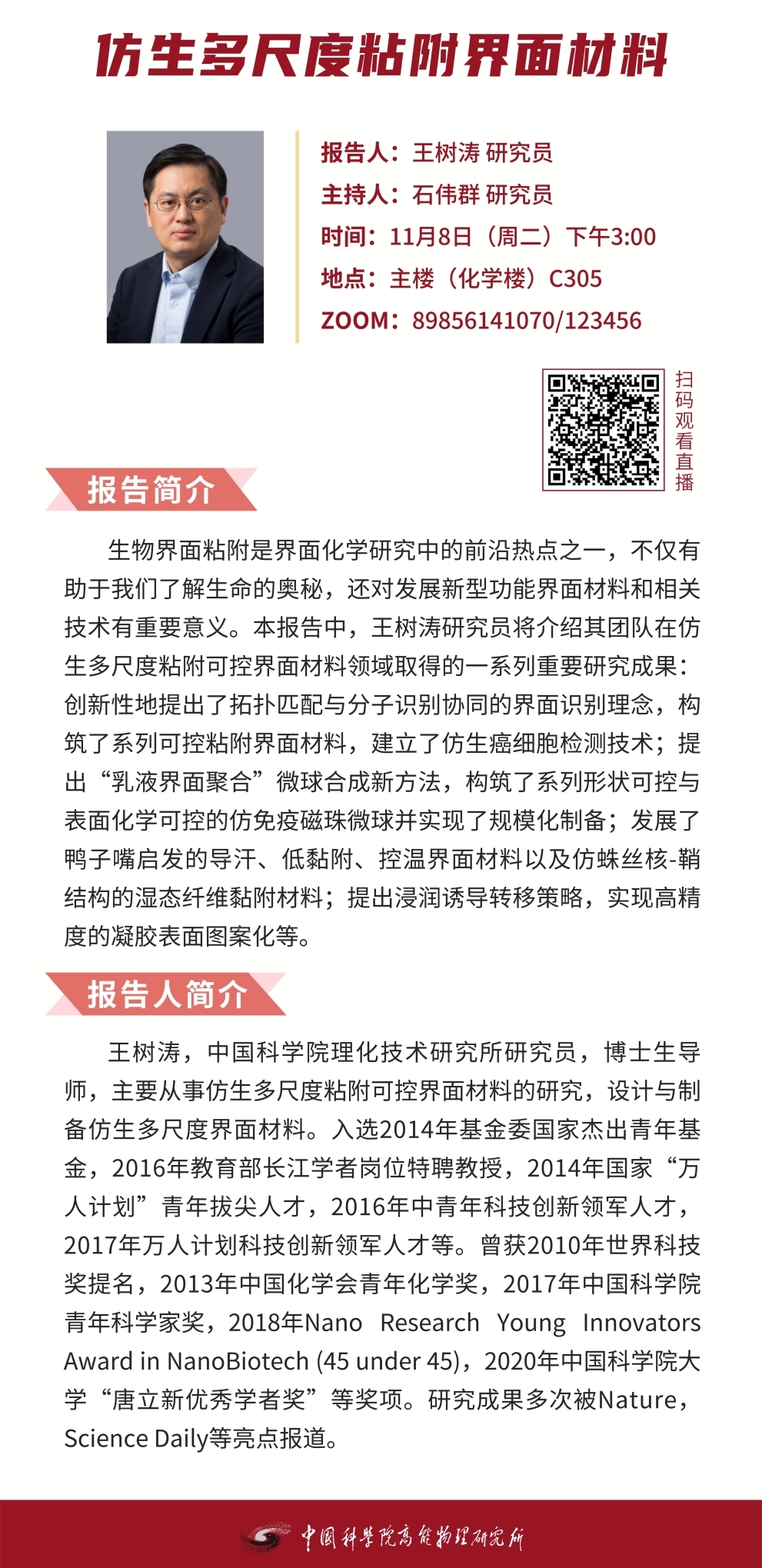 【11.08】建所50周年系列活动之高能所科技创新论坛(361)仿生多尺度粘附界面材料