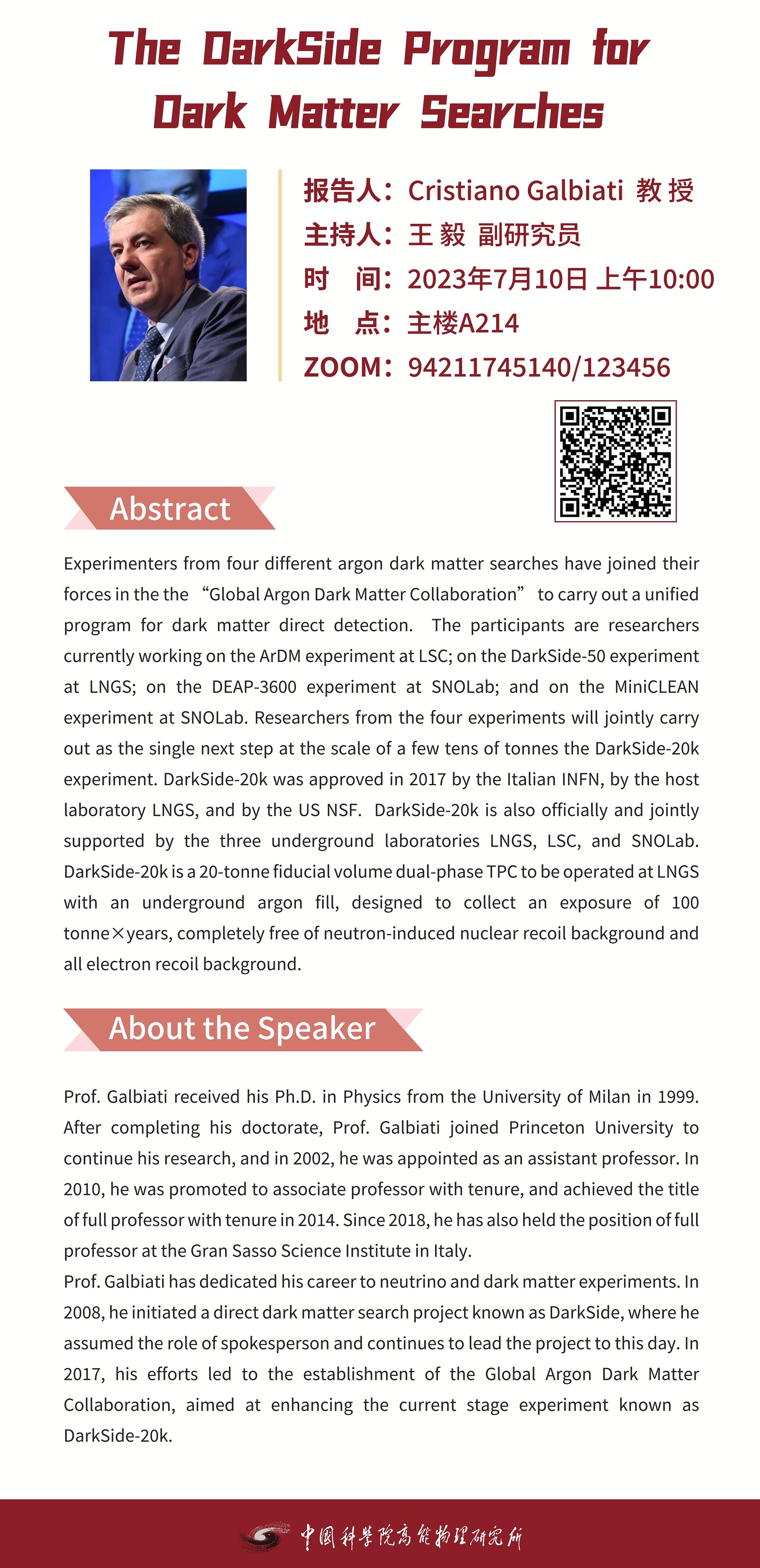 【07.10】建所50周年系列活动之高能所科技创新论坛(373)The DarkSide Program for Dark Matter Searches