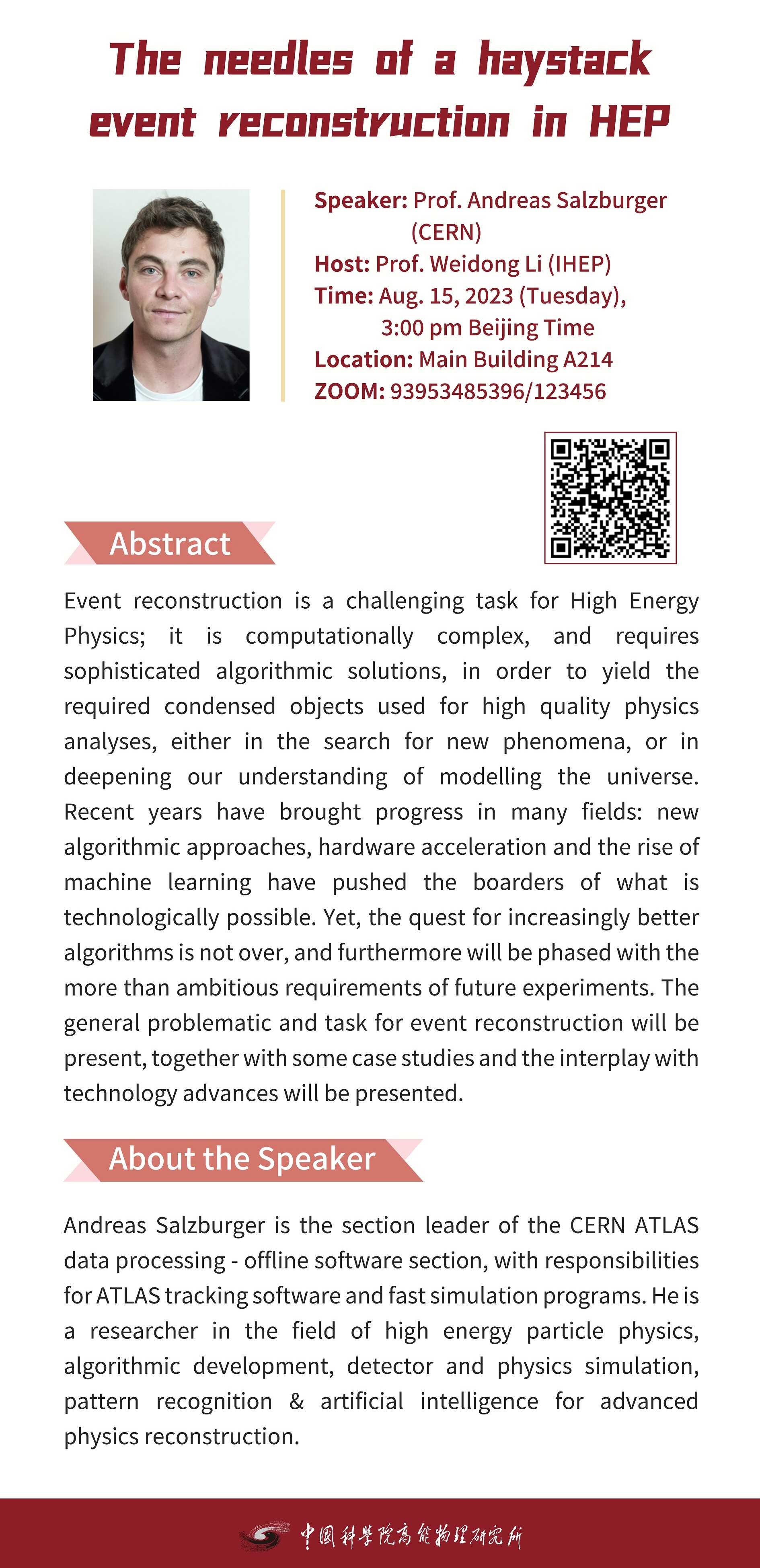 【08.15】建所50周年系列活动之高能所科技创新论坛(378)The needles of a haystack - event reconstruction in HEP