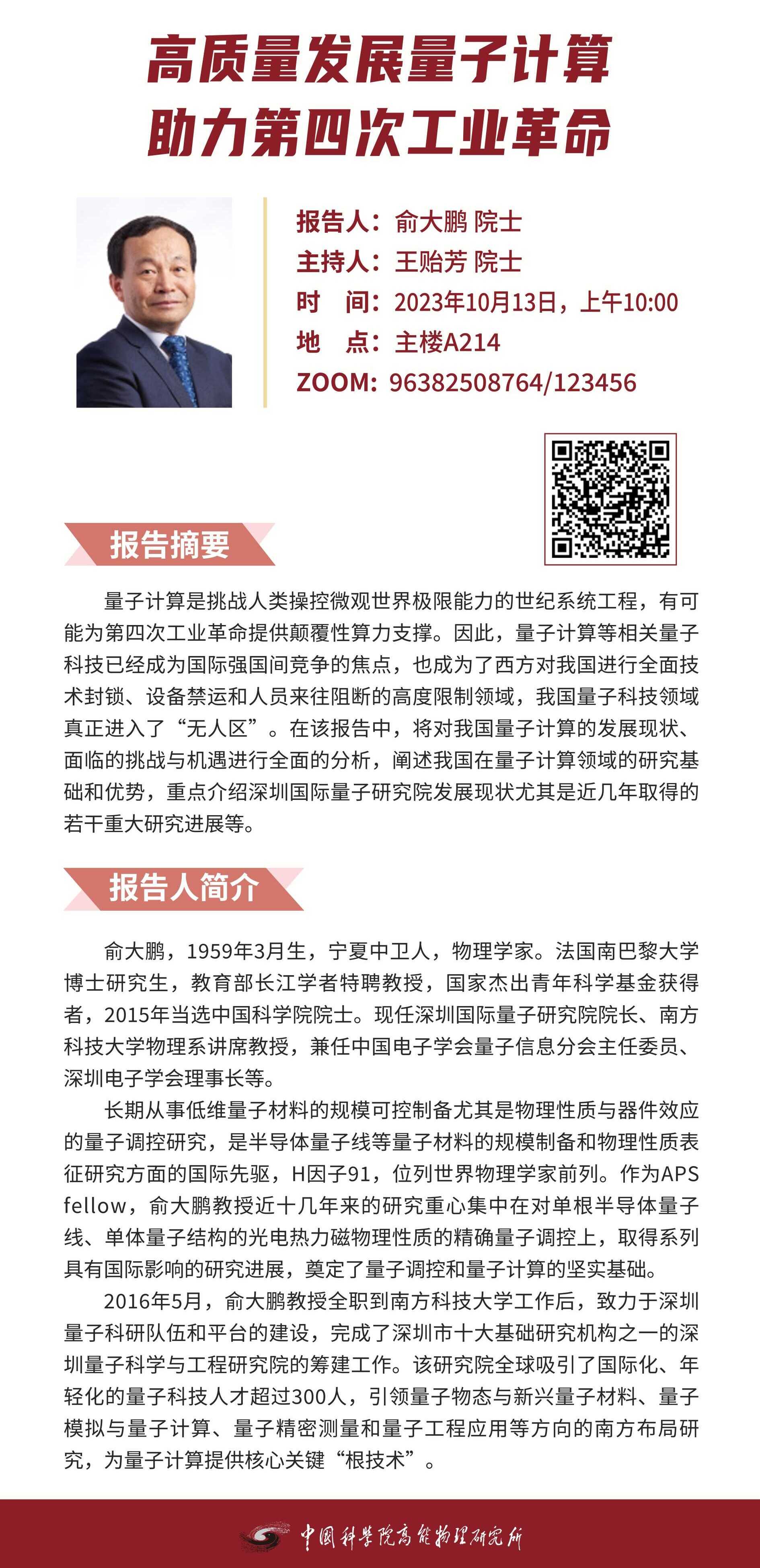 【10.13】建所50周年系列活动之高能所科技创新论坛(379)高质量发展量子计算 助力第四次工业革命