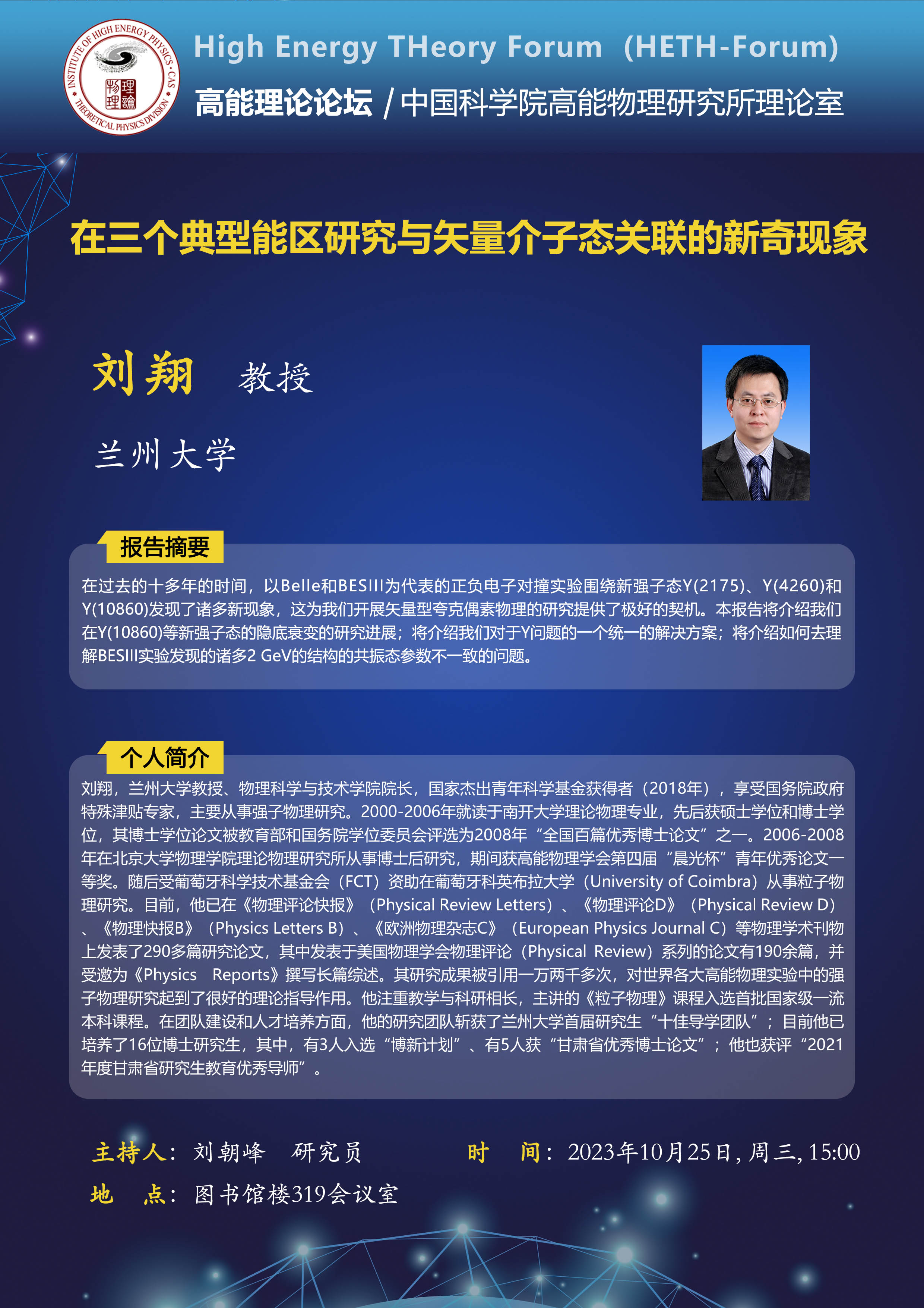 【10.25】高能理论论坛第56期--在三个典型能区研究与矢量介子态关联的新奇现象