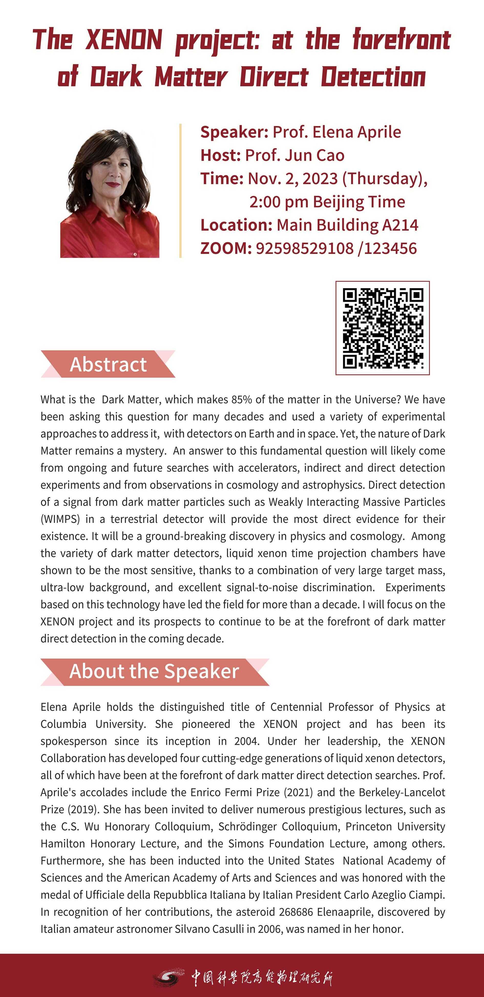 【11.02】建所50周年系列活动之高能所科技创新论坛(385)The XENON project: at the forefront of Dark Matter Direct Detection