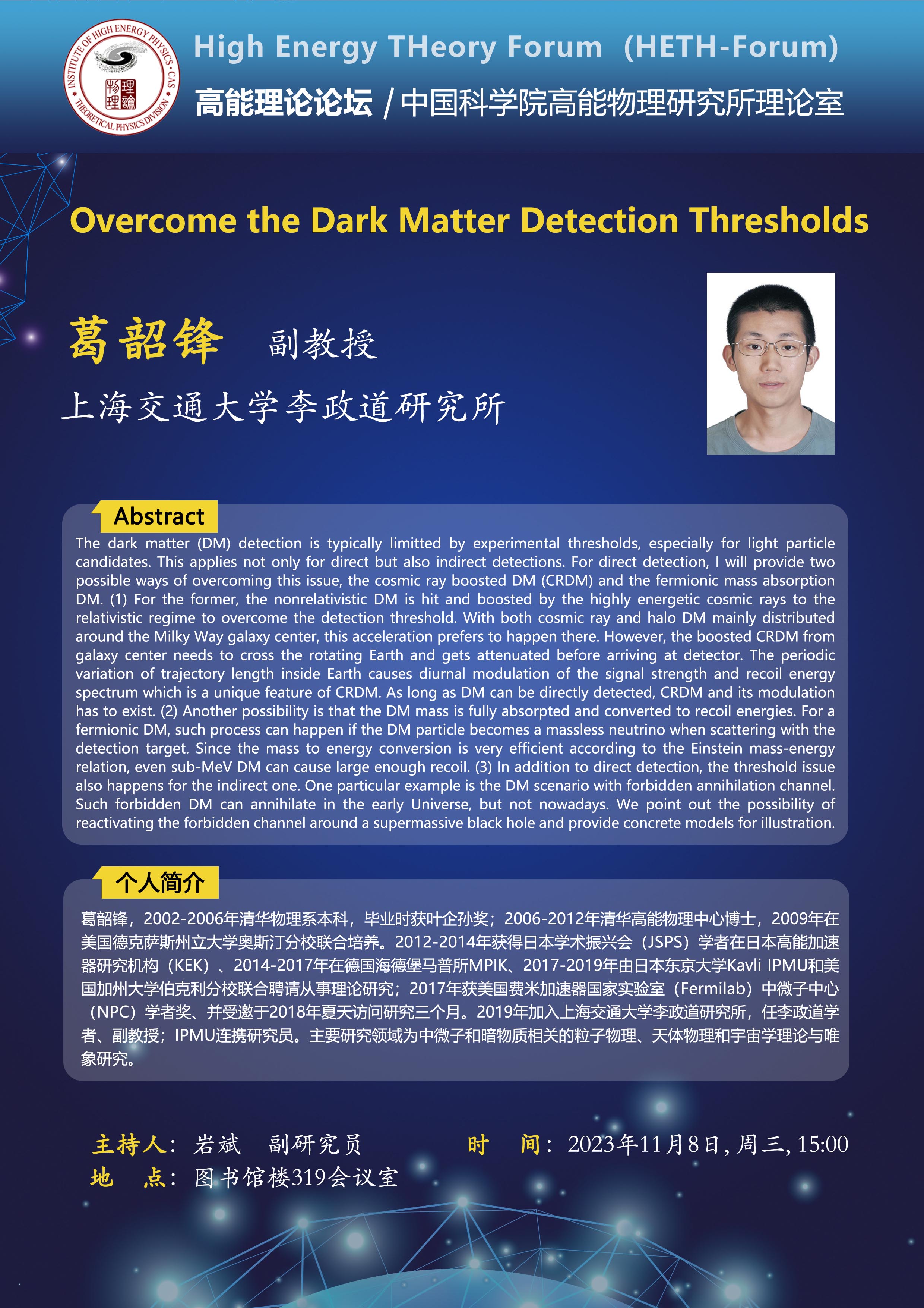 【11.08】高能理论论坛第58期--Overcome the Dark Matter Detection Thresholds