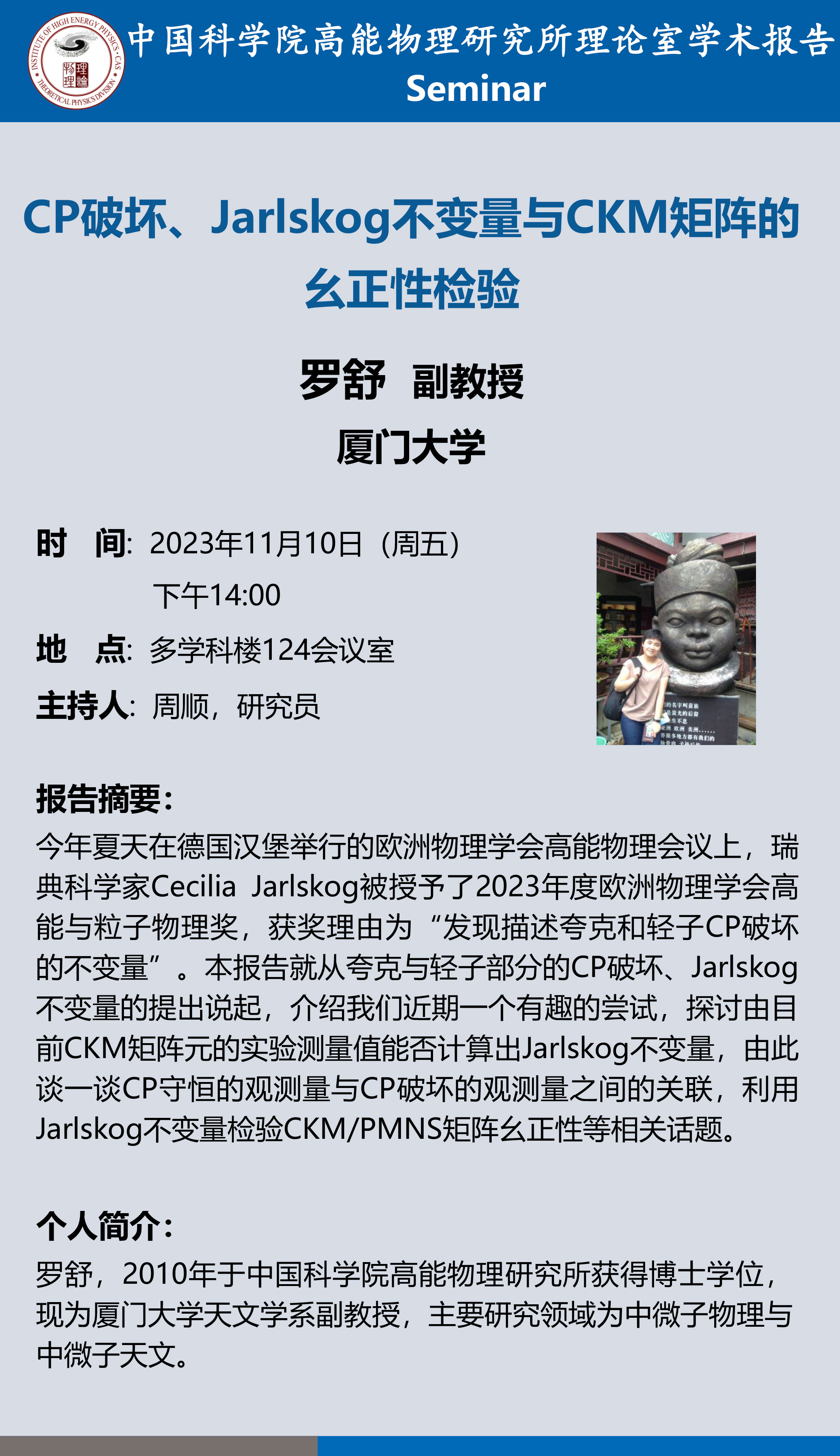 【11.10】Seminar:CP破坏、Jarlskog不变量与CKM矩阵的幺正性检验