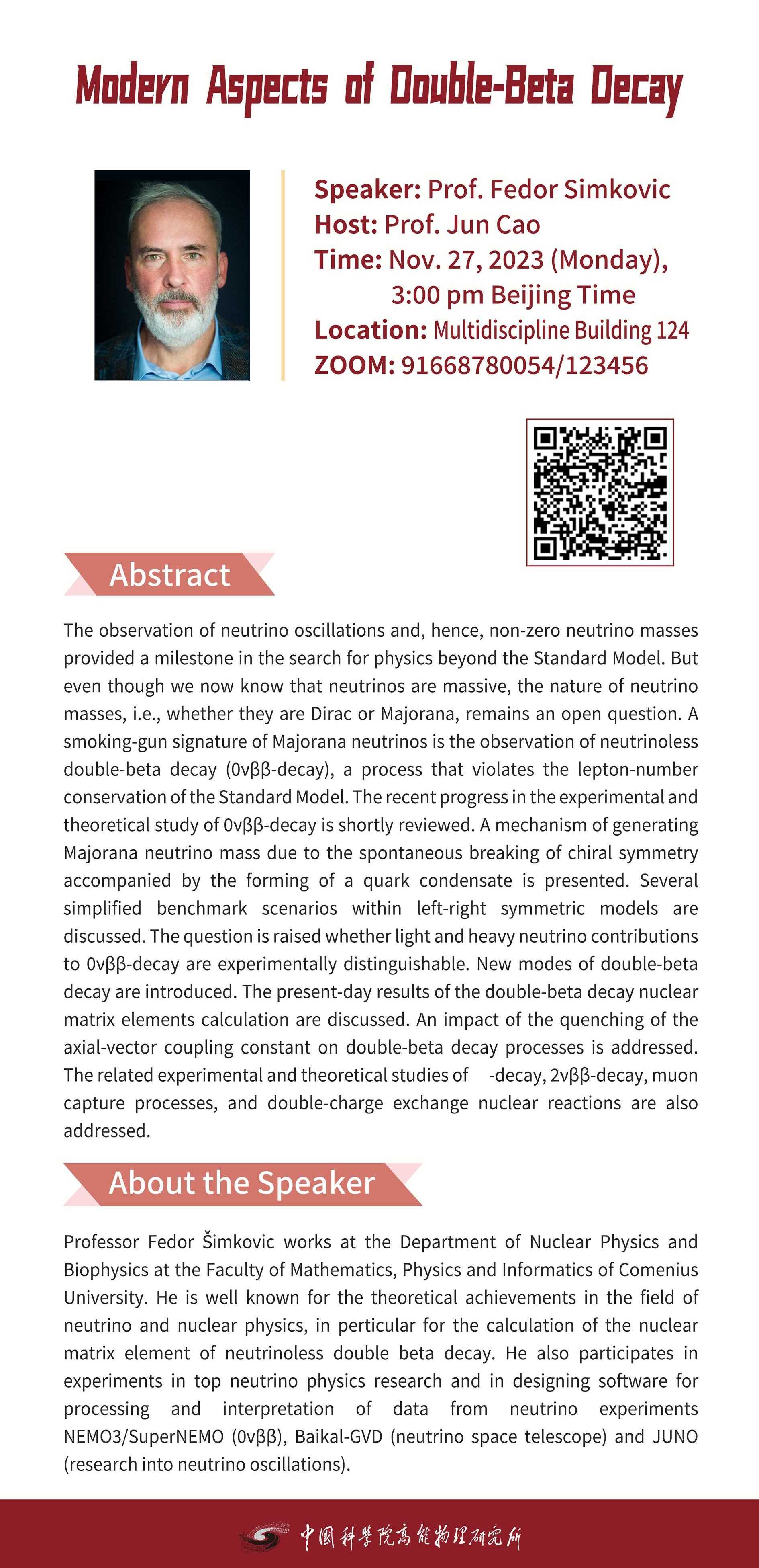 【11.27】建所50周年系列活动之高能所科技创新论坛(388)Modern Aspects of Double-Beta Decay