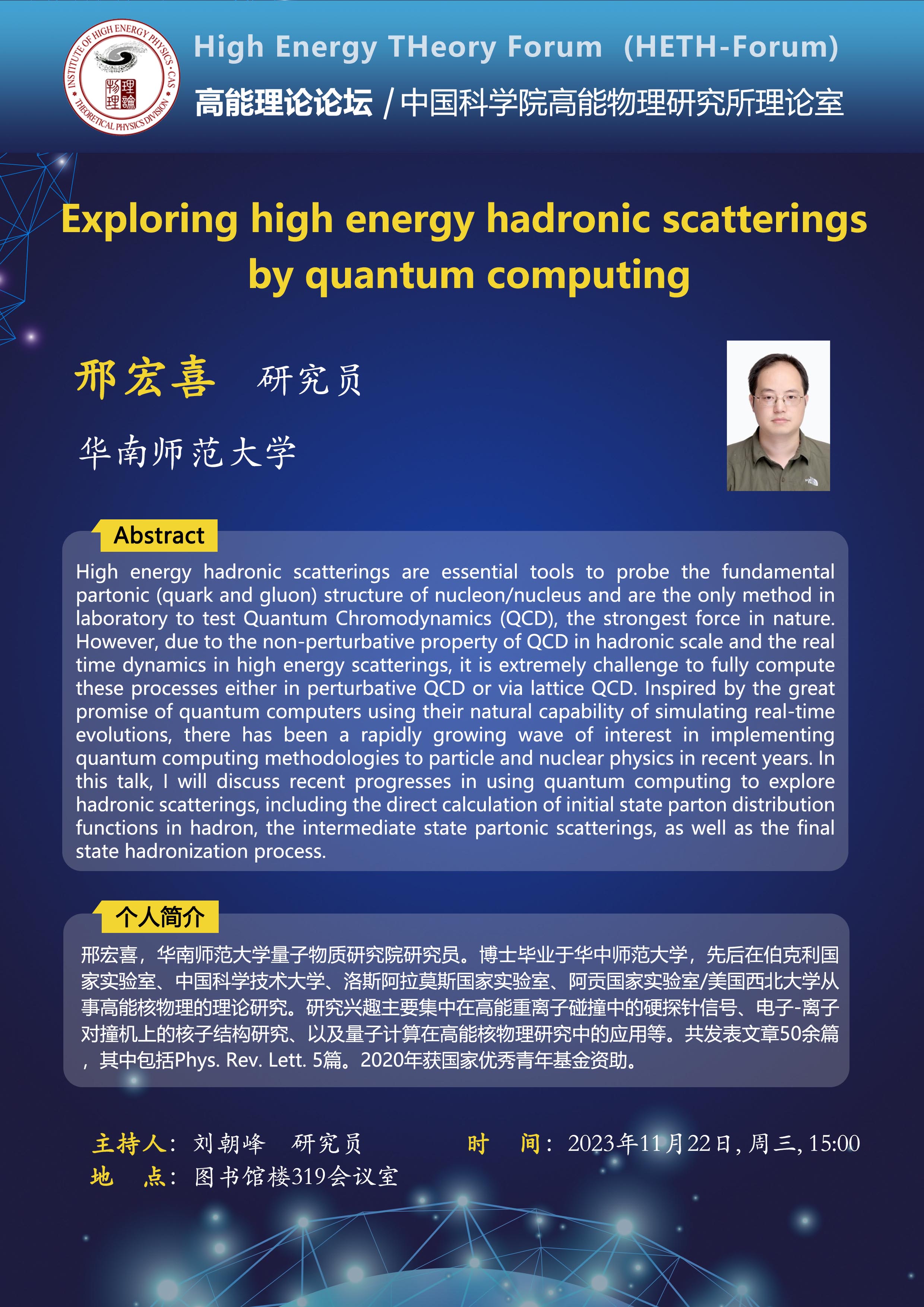 【11.22】高能理论论坛第59期--Exploring high energy hadronic scatterings by quantum computing