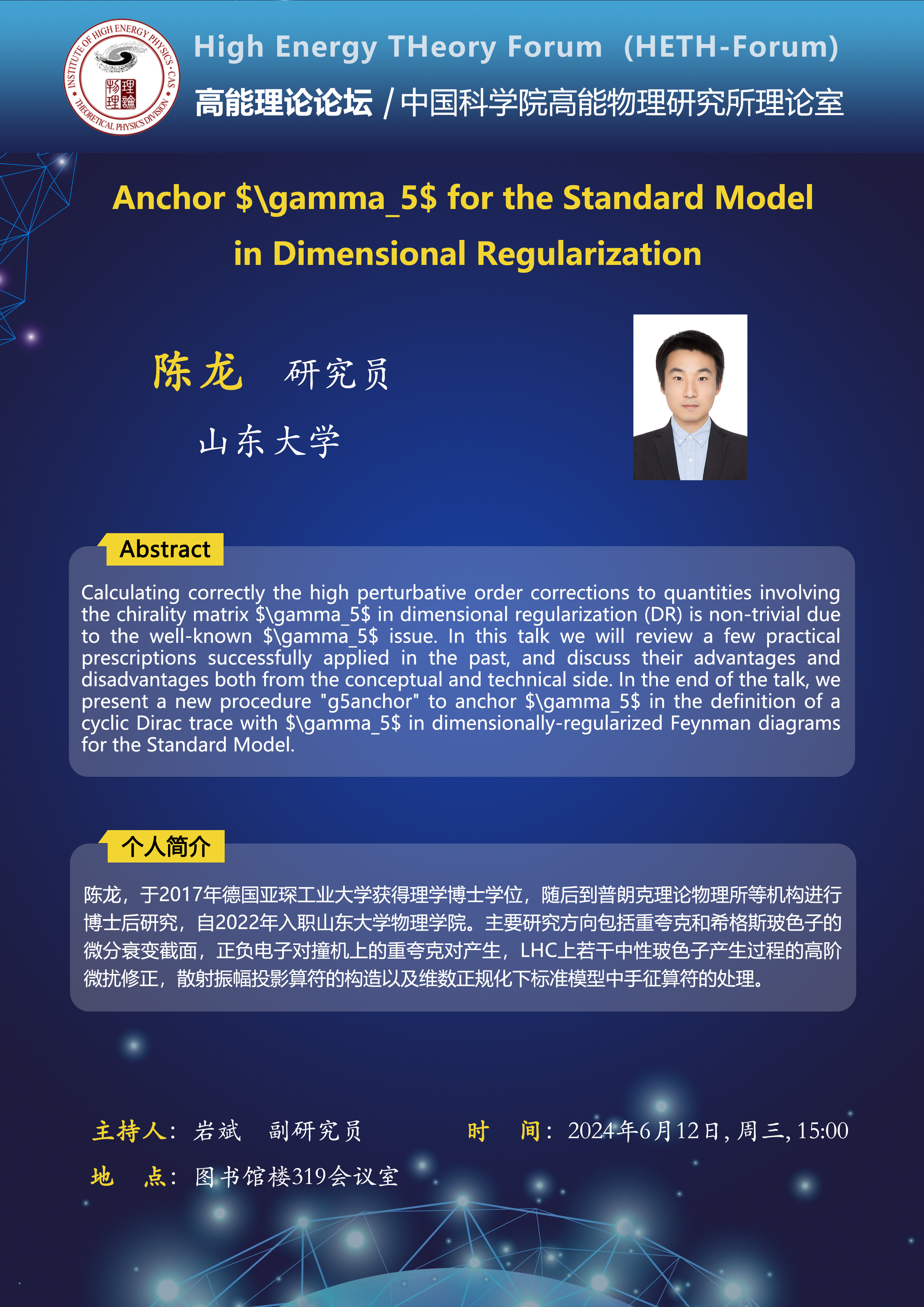 【06.12】高能理论论坛第77期--Anchor $\gamma_5$ for the Standard Model in Dimensional Regularization
