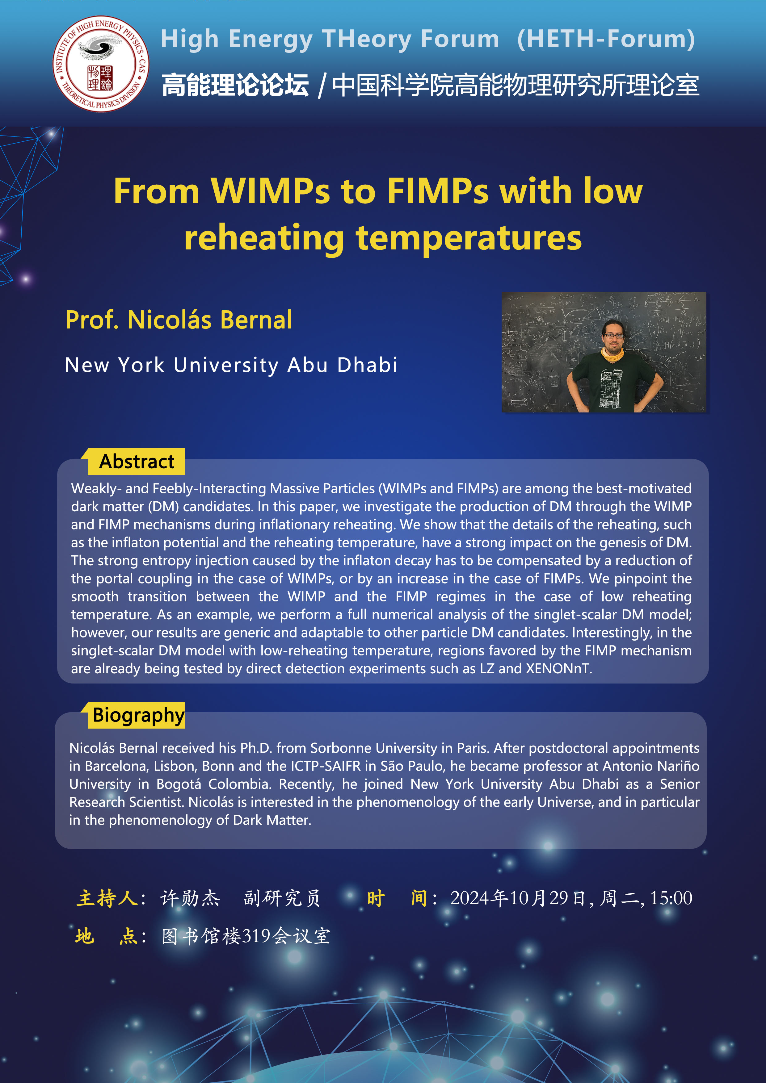 【10.29】高能理论论坛第81期--From WIMPs to FIMPs with low reheating temperatures