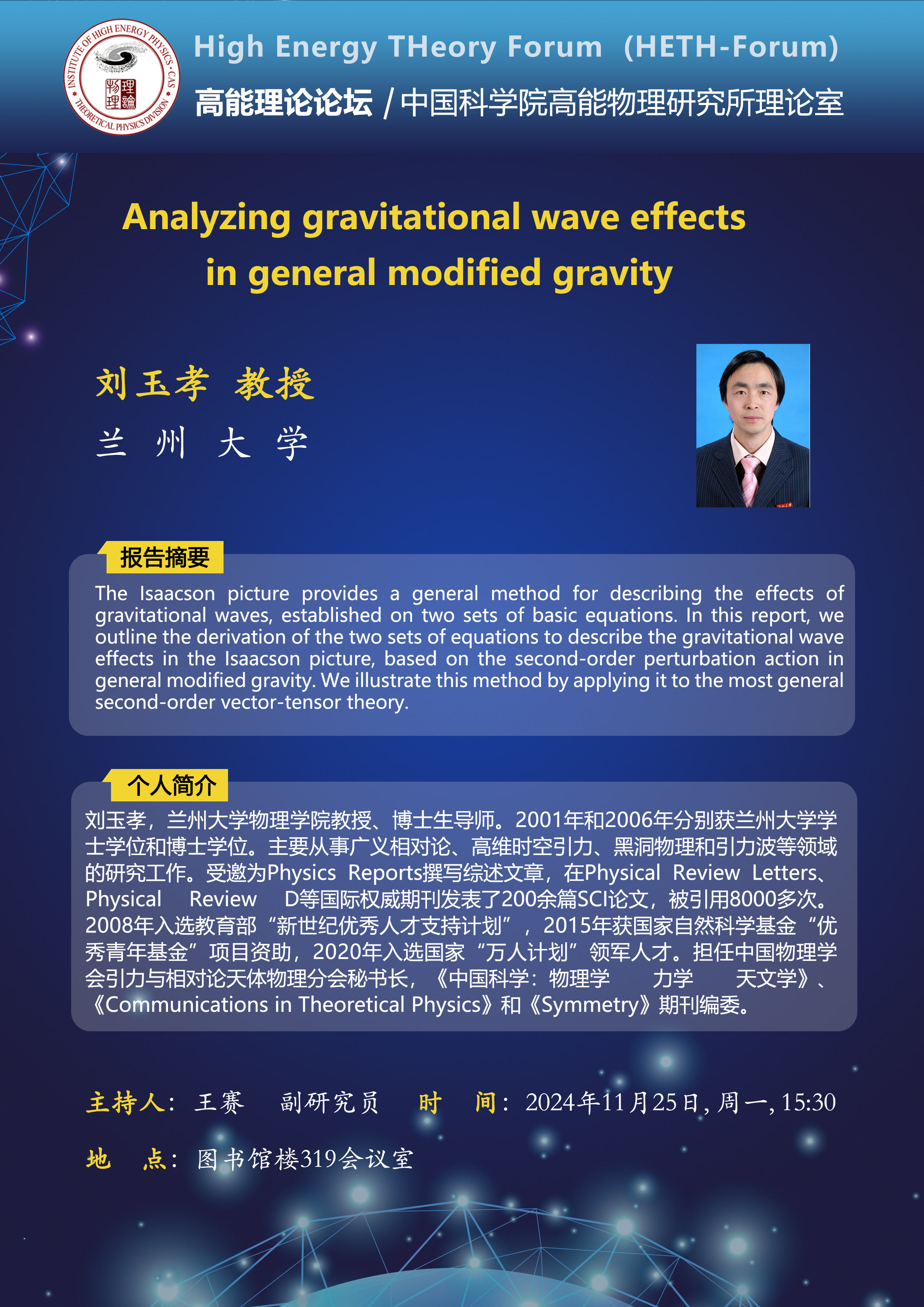 【11.25】高能理论论坛第85期--Analyzing gravitational wave effects in general modified gravity