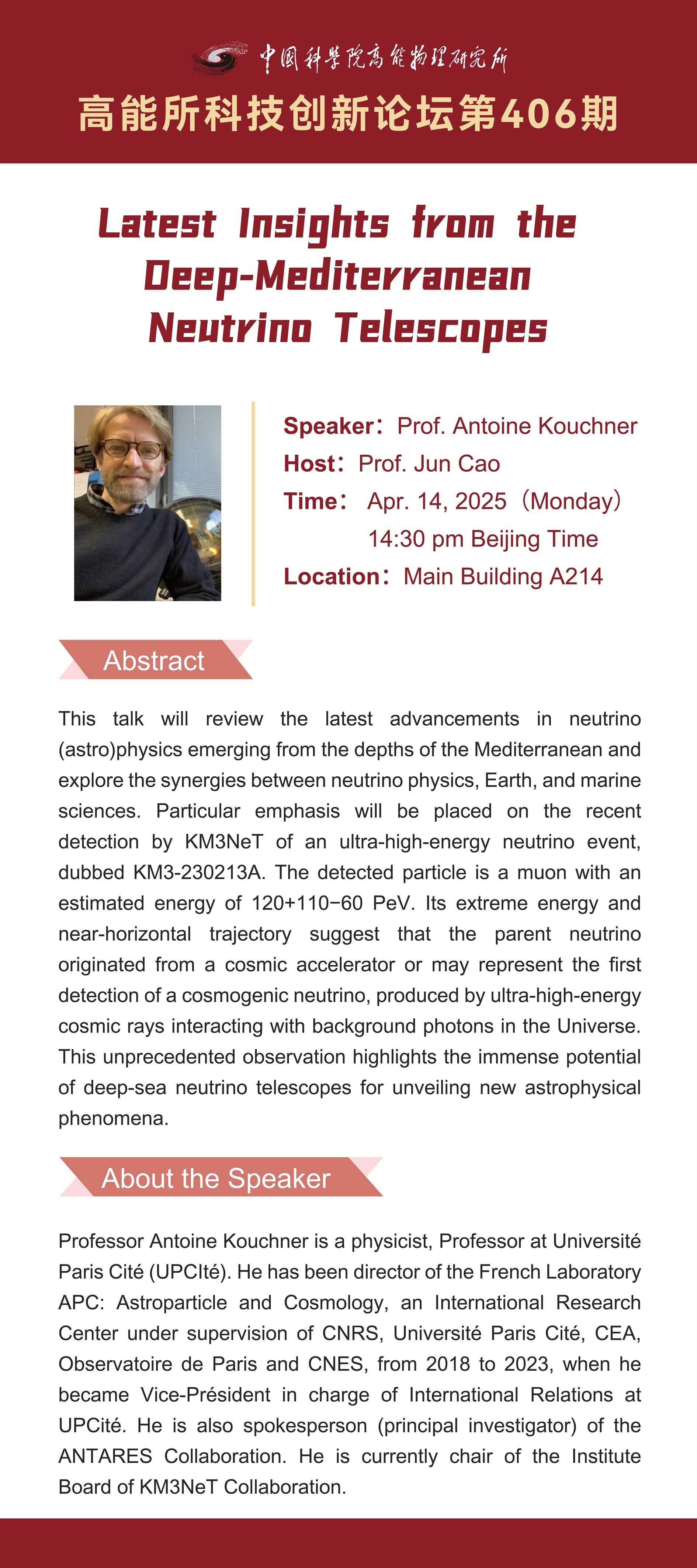 【04.14】高能所科技创新论坛(406)Latest Insights from the Deep-Mediterranean Neutrino Telescopes