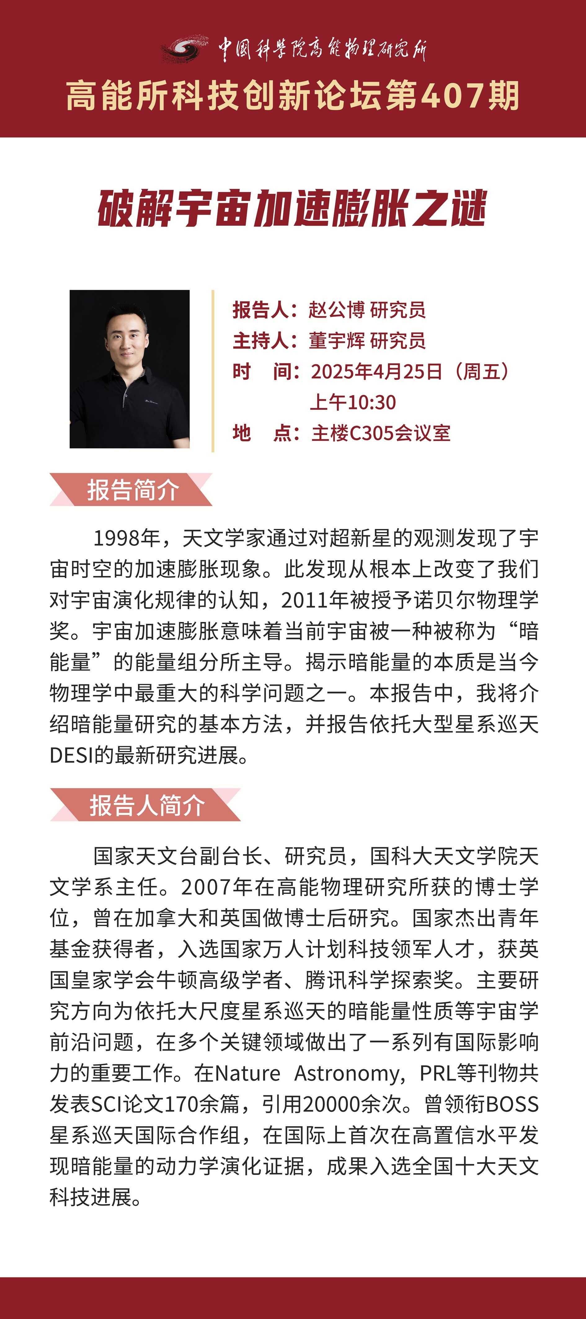 【04.25】高能所科技创新论坛(407)破解宇宙加速膨胀之谜