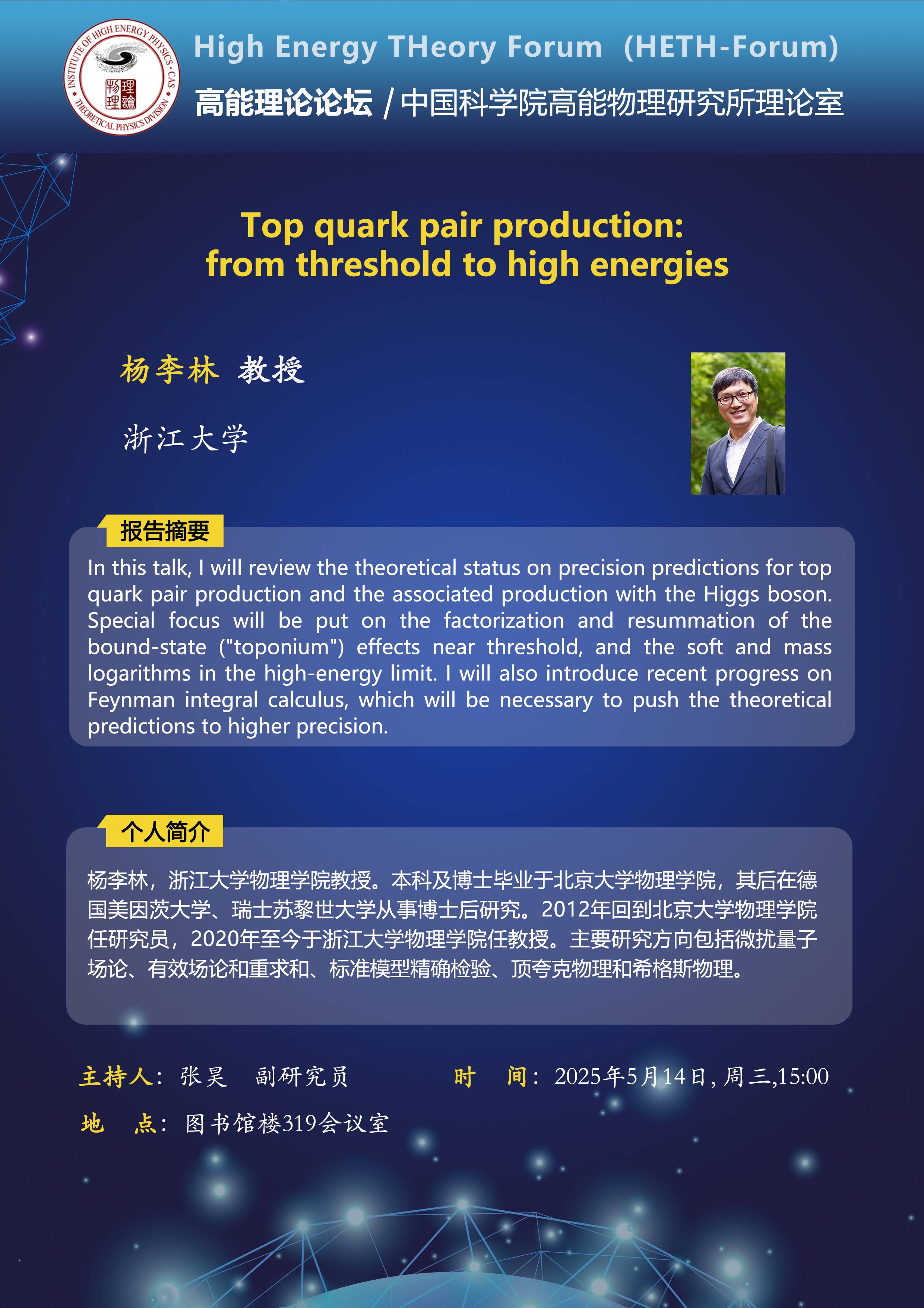 【05.14】高能理论论坛第97期--Top quark pair production: from threshold to high energies