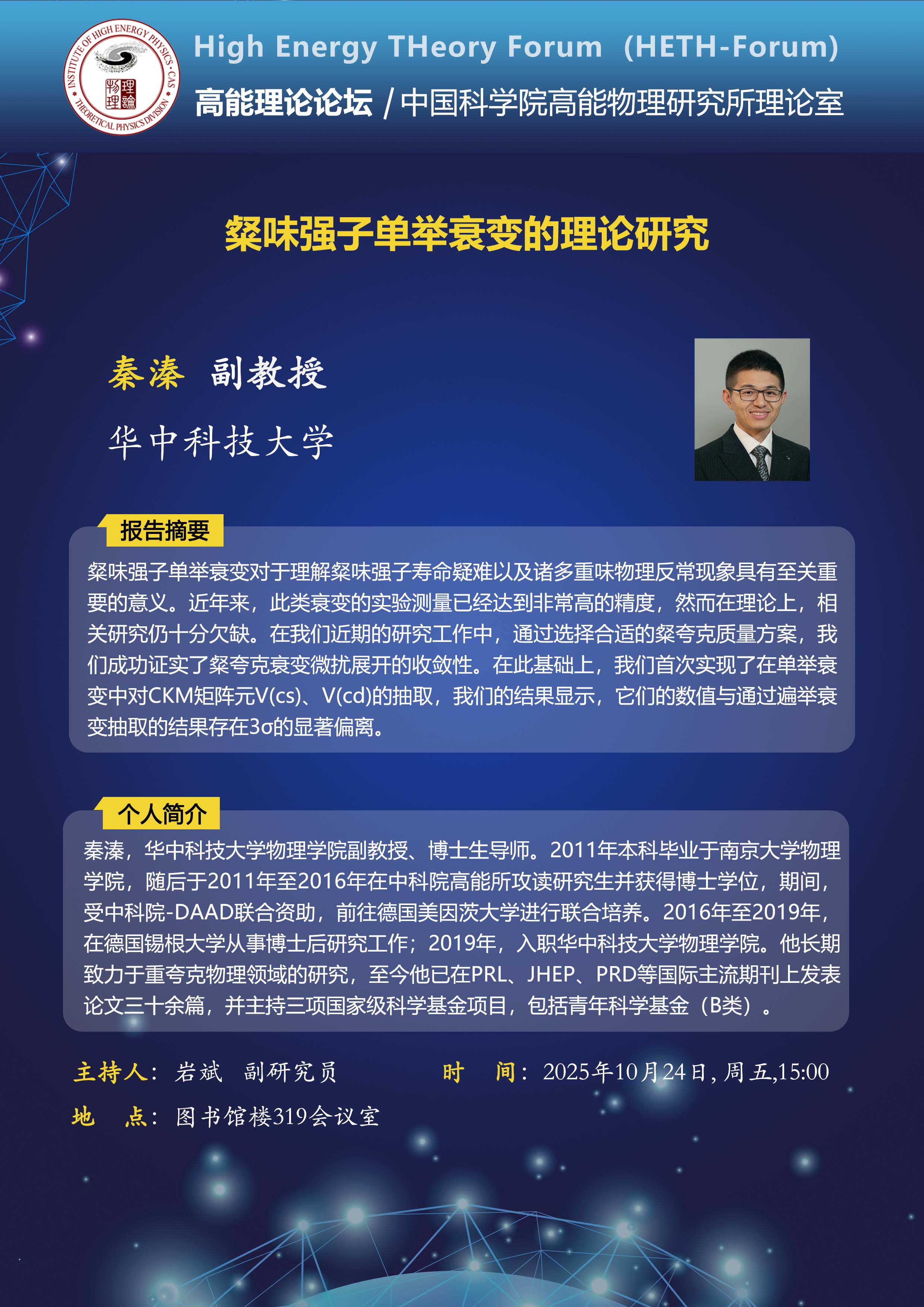 【10.24】高能理论论坛第108期--粲味强子单举衰变的理论研究