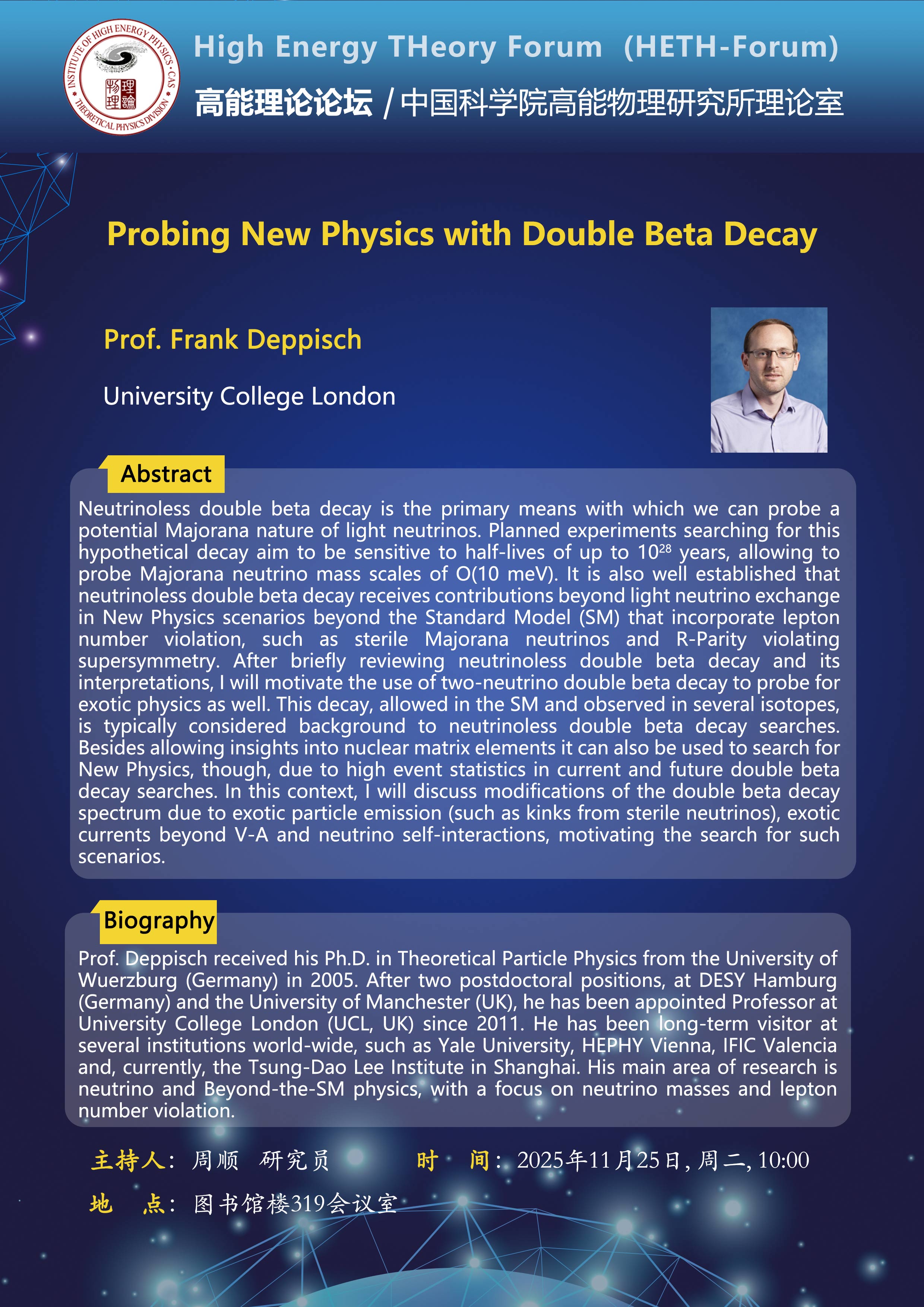 【11.25】高能理论论坛第112期--Probing New Physics with Double Beta Decay
