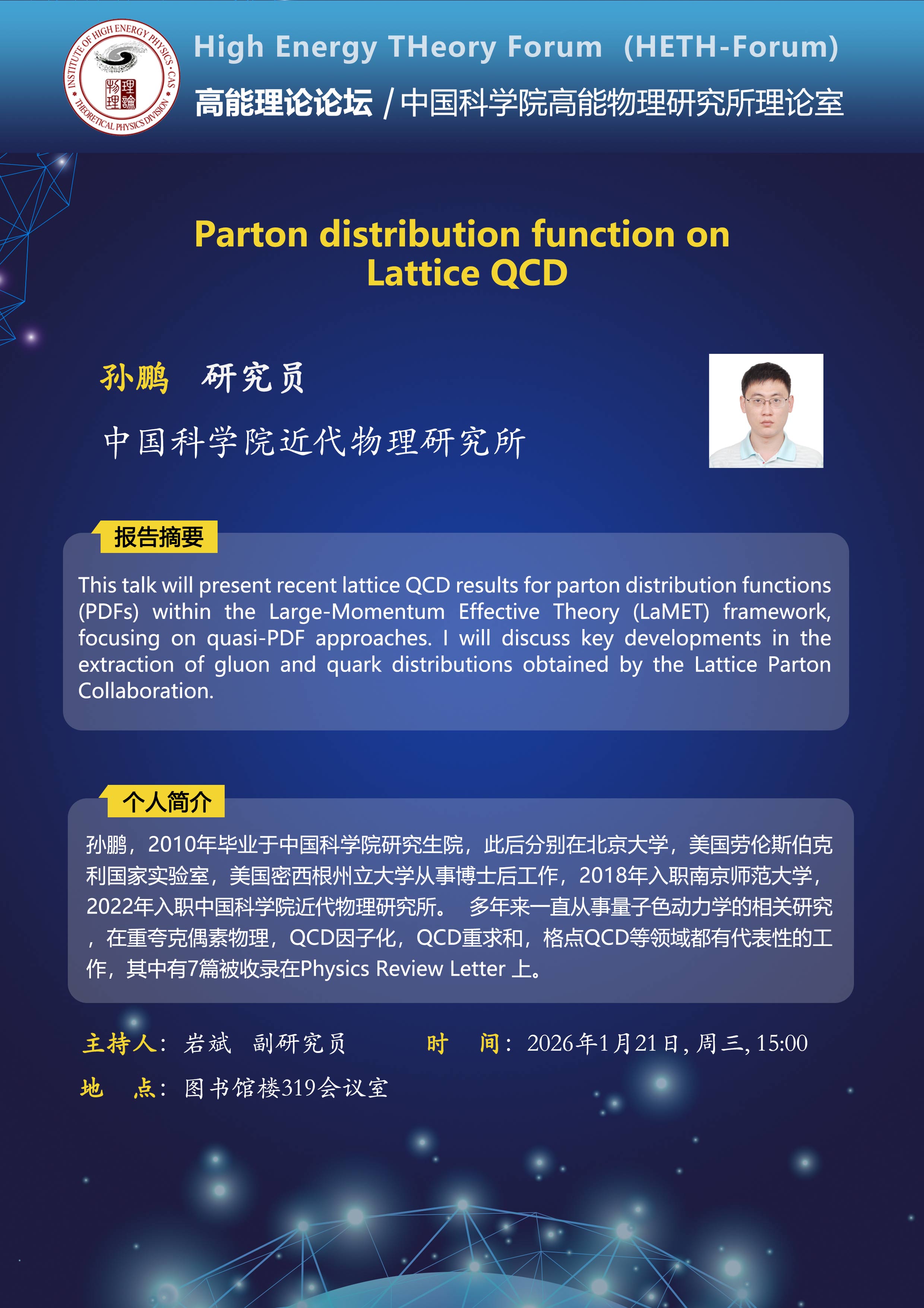 【01.21】高能理论论坛第119期--Parton distribution function on Lattice QCD
