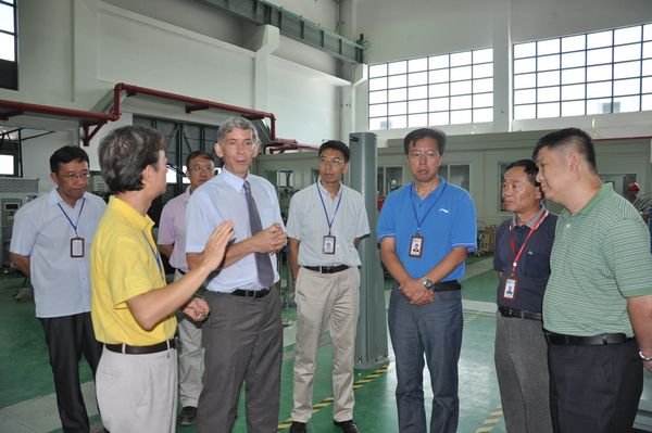 Robert McGreevy教授首先参观了中国散裂中子源沙盘,了解了工程总体概况和最新进展;然后来到1号和2号测试实验厅,对正在组装和测试的加速器设备进行了考察。最后参观了施工中的环基坑和靶站,提出了宝贵的建议和意见。他感到工程建设地发生了巨大变化,进展比较顺利。
