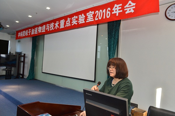 大会由重点实验室副主任潘卫民主持。黄敏代表院前沿科学与教育局指出:在科学发展的今天,大科学装置所承载的科学目标,推动着各项技术的发展,同时技术的发展又将科学的发展推向新的高度。加速器作为多项技术及物理的综合学科,其发展与科学的发展密切相关,带动了各类先进技术的发展,也推动着整个社会的进步。国家实验室和国家重点实验室,也将改变单一学科组成的格局,向着多学科,多研究方向的综合性研究基地发展,以建设科学平台为中心,为国家科学和技术的发展,做出更加重大的贡献。她充分肯定了成立粒子加速物理与技术院重点实验室的初衷,并且对实验室一年来的发展表示认可,也鼓励实验室向着国家重点实验室方向努力,充分发挥实验室基础科学平台与技术集成转化的独特作用,为粒子加速物理与技术的推动与发展,做出国内最高水平的研究工作。