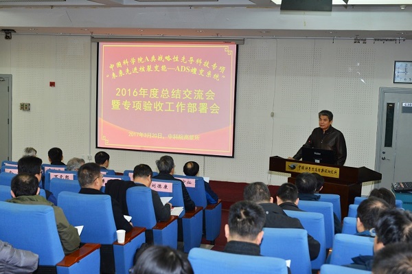 3月20日,中国科学院先导专项“未来先进核裂变能—ADS嬗变系统”2016年度总结交流会暨专项验收工作部署会在中科院高能所召开。詹文龙院士,方守贤院士,万元煕院士,高能所所长王贻芳院士,中科院重任局彭子龙处长,ADS监理组专家,近物所党委书记赵红卫、副所长徐瑚珊、副所长胡正国,高能所党委书记潘卫民以及项目和课题负责人等近80人出席了会议。