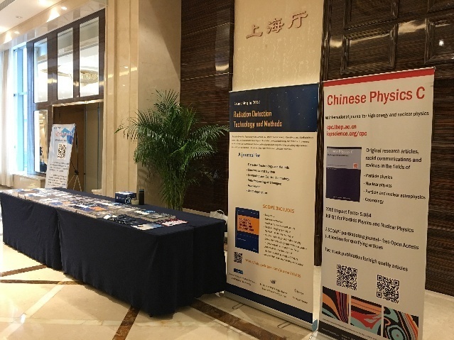 会议期间,文献信息部负责的学术期刊《中国物理 C》(Chinese Physics C ,简称CPC)、Radiation Detection Technology and Methods(简称RDTM)和科普期刊《现代物理知识》三家编辑部联合设立展台和海报,吸引了大批与会代表前来参观。高能所所长、CPC主编王贻芳,副主编吕才典、李海波以及编委们驻足展台,关注期刊的宣传。文献信息部主任郑文莉和编辑部积极向与会代表介绍期刊的出版单位、主要内容、收录情况等,并就投稿流程、订刊方式等进行答疑。