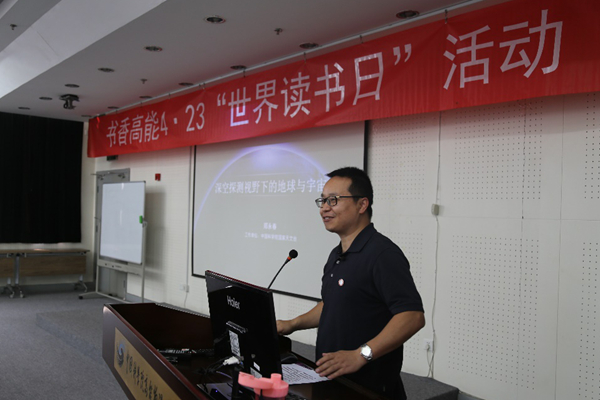4月22日下午,2019年“4·23世界读书日”系列活动之第二届书香高能讲堂开讲,中科院高能所文献信息部和中科院青促会高能所小组共同举办了本次活动。中科院青促会会员、中国科普作家协会副理事长、国家天文台郑永春研究员做了《深空探测视野下的地球与宇宙》的报告,来自高能所、国科大、中国国际广播电台等单位的近120位听众参加了活动,主办方同时设置了东莞分会场和在线直播。