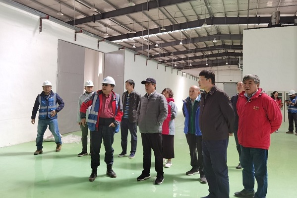 专家组在装配大厅察看工艺安装情况