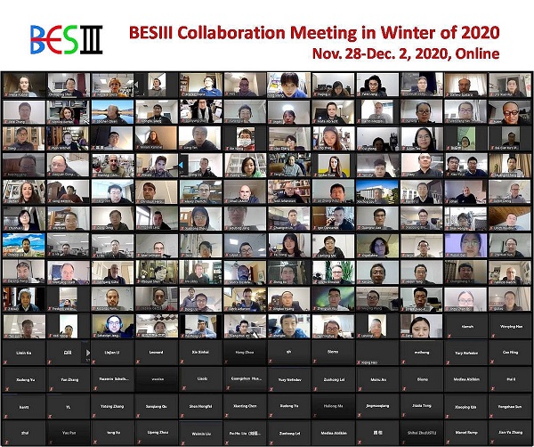 11月28日至12月2日,北京谱仪Ⅲ(BESⅢ)国际合作组2020年冬季会议召开线上会议。来自中科院高能所、北京大学、南开大学、中国科学技术大学等国内合作单位,以及来自意大利、德国、英国、芬兰、俄罗斯、美国、瑞典、塞浦路斯、土耳其、印度、韩国等国外合作单位共约170名学者和研究生参加了会议。会议由合作组发言人苑长征研究员主持。