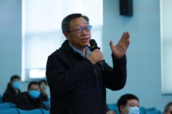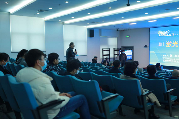 互动环节中,张杰和现场观众及线上观众共同就激光加速器装置建设、激光加速、激光等离子体辐射源、激光技术对于高能物理研究的推动等主题进行了交流互动。