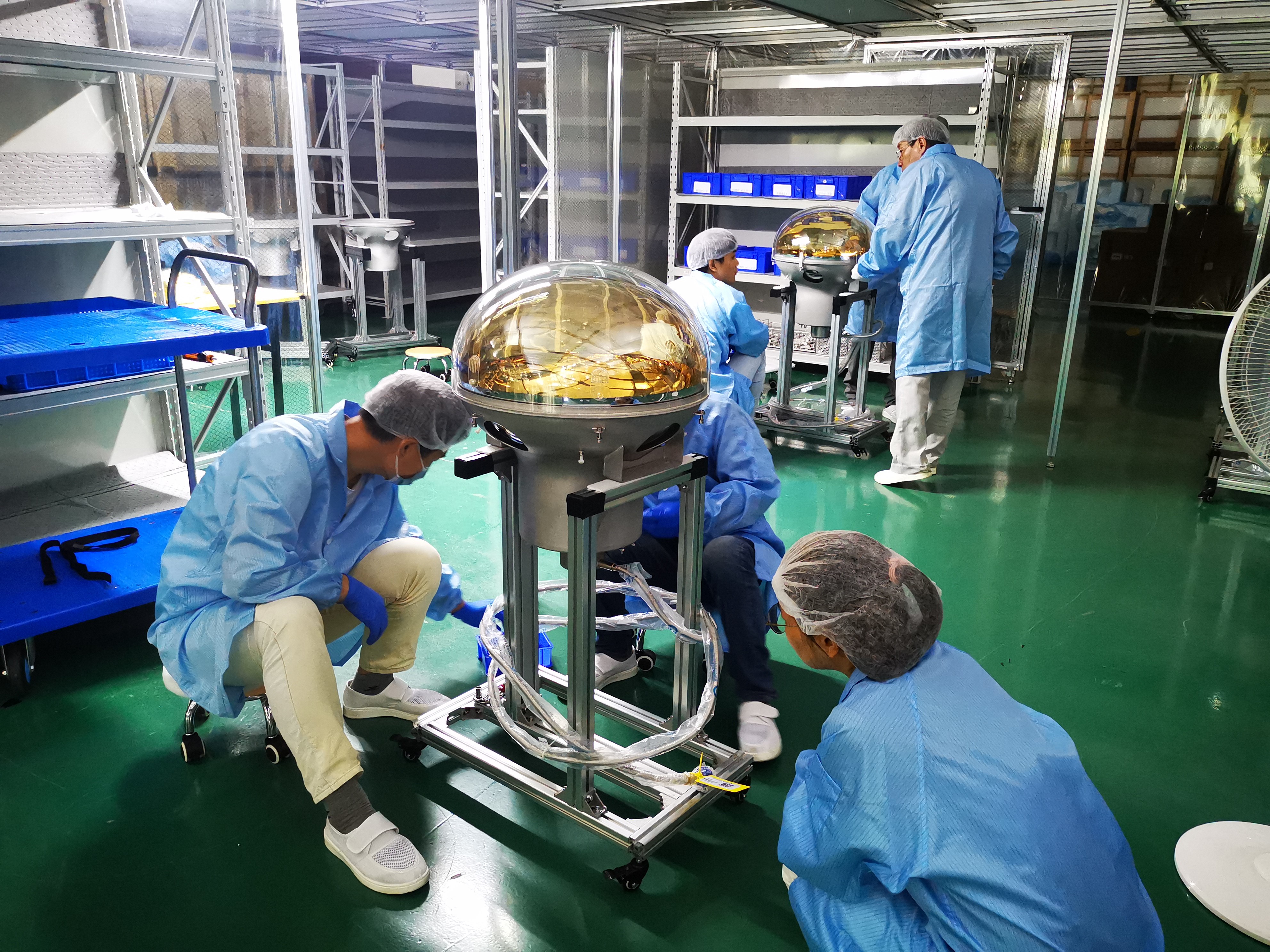 PMT测试与防护系统负责人秦中华及其团队此前已完成了全部PMT的测试和防水封装,积累了丰富的实际操作经验,未来,他们还将严格按照标准化操作流程,保质保量完成全部两万支20英寸PMT的防护罩装配工作。